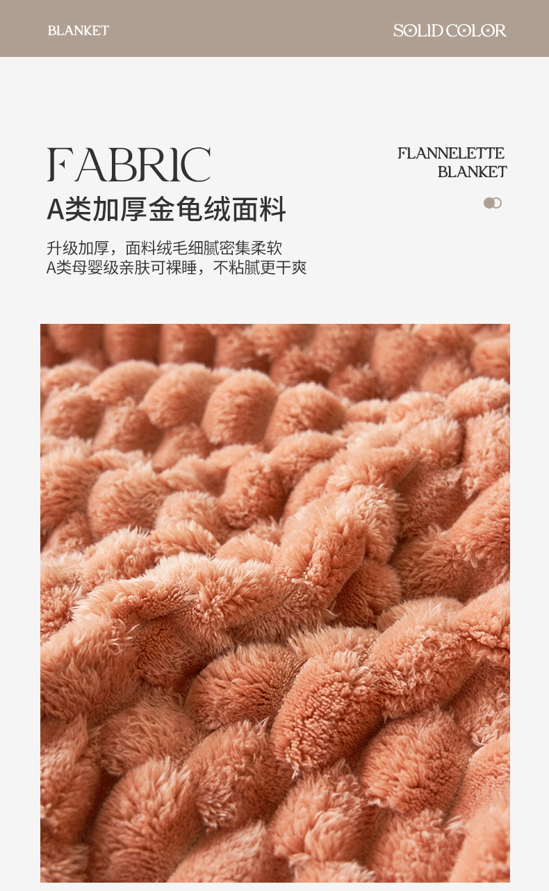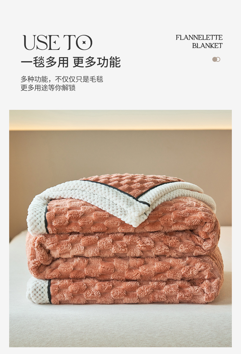 商品名称:莱家富 2026新款跨境外贸金龟绒多功能毛毯高克重法莱绒牛奶绒保暖毛毯(支持抽空压缩,卷包) 暖橘