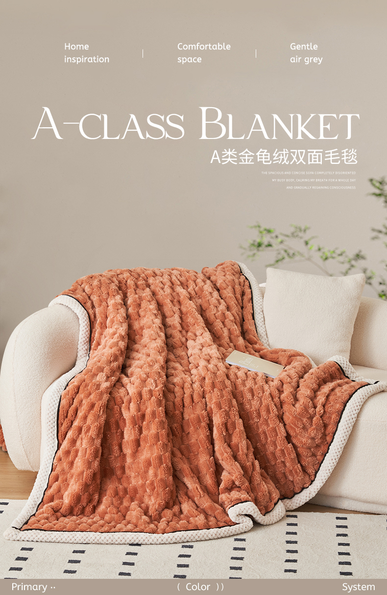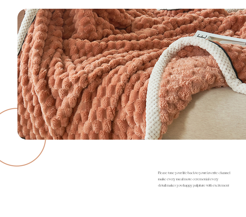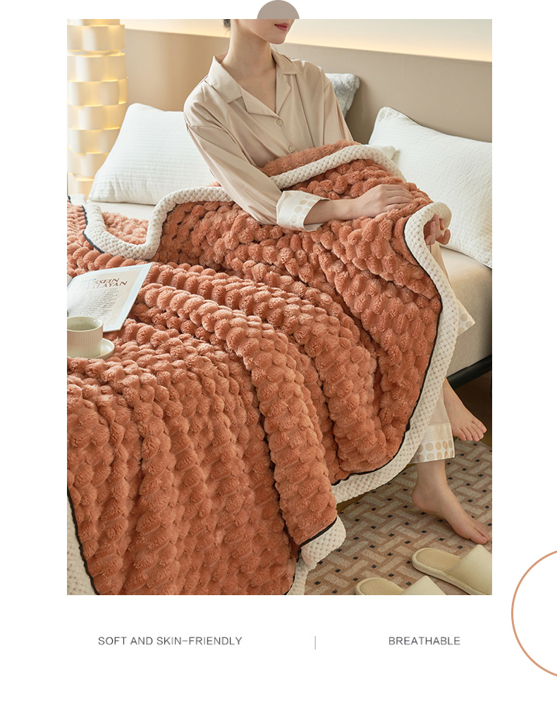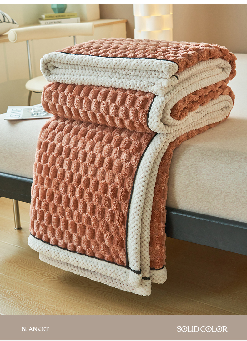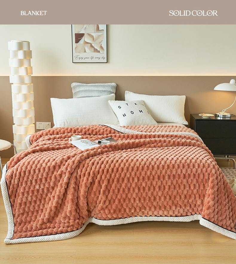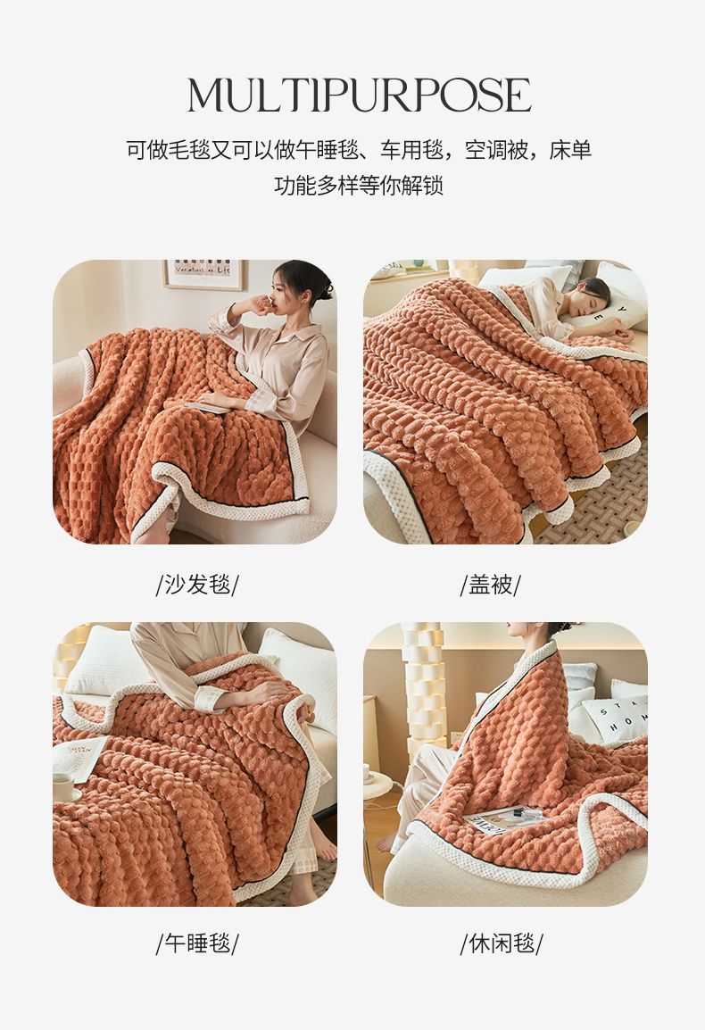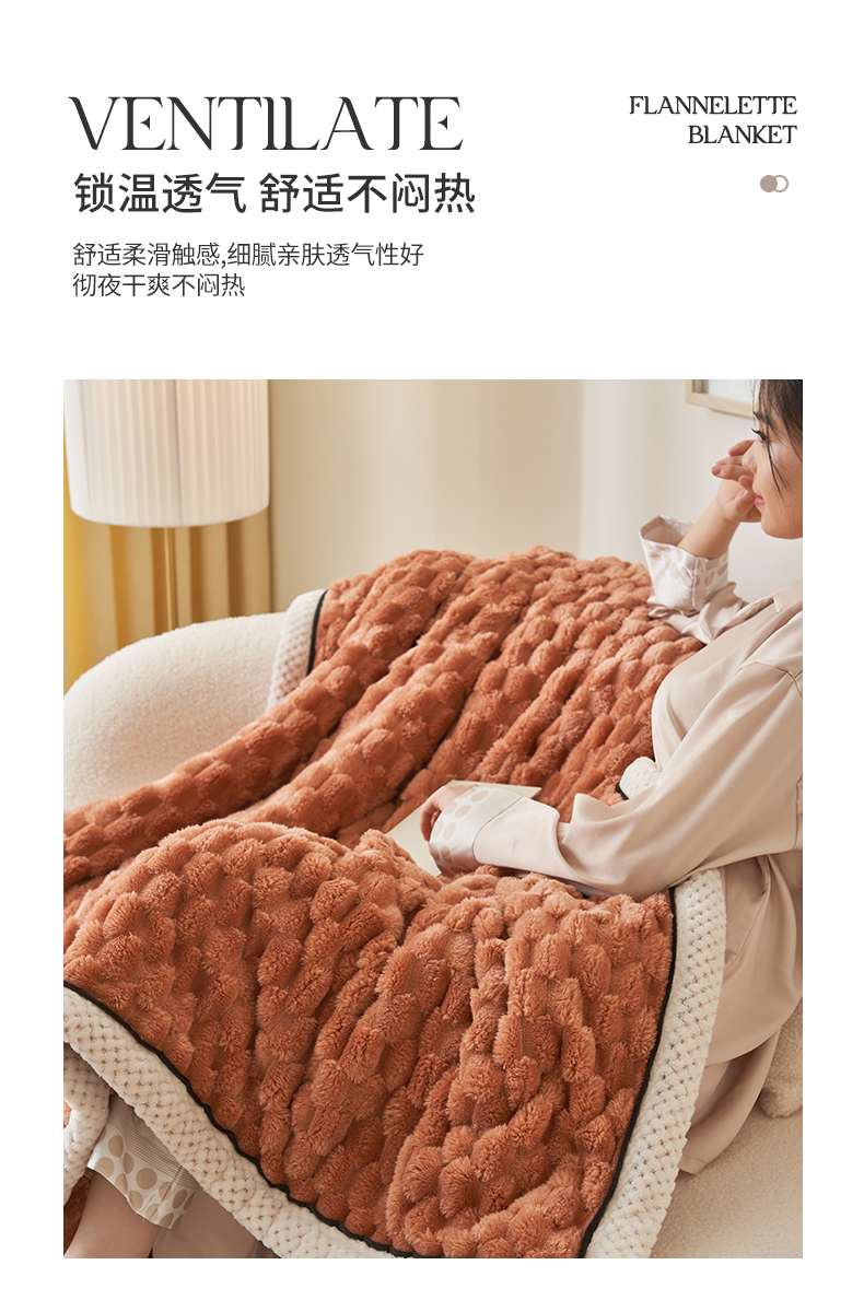 莱家富 2026新款跨境外贸金龟绒多功能毛毯高克重法莱绒牛奶绒保暖毛毯(支持抽空压缩,卷包) 暖橘