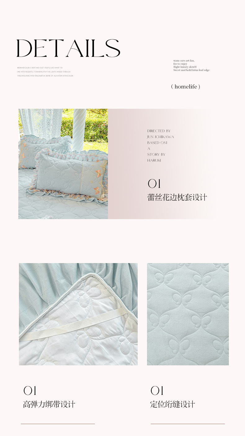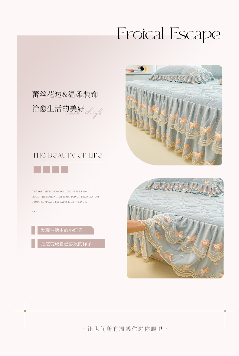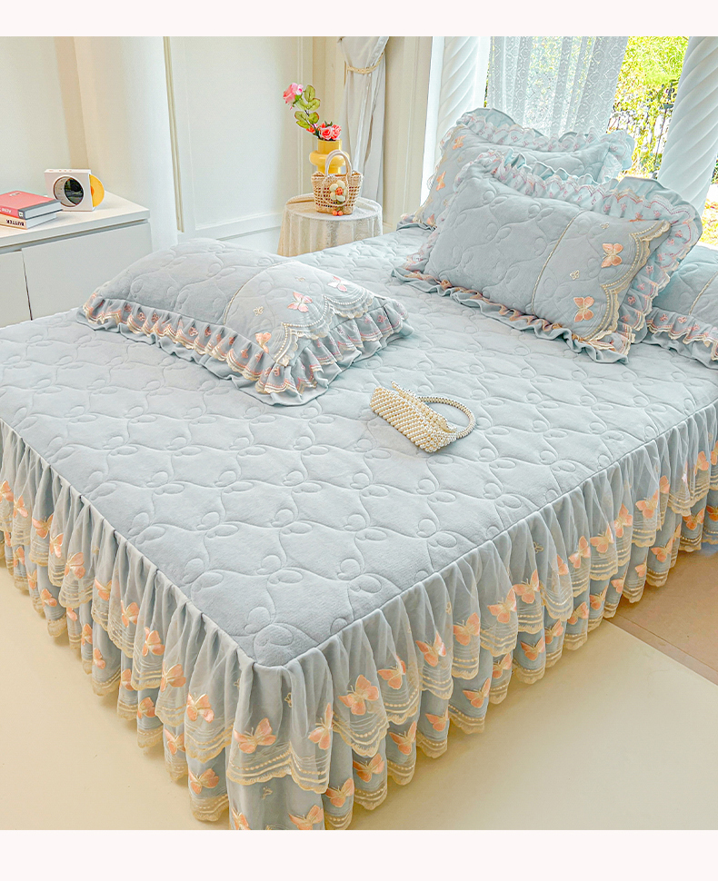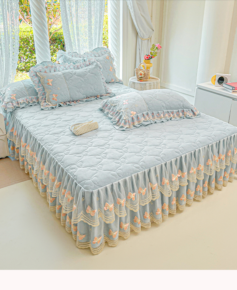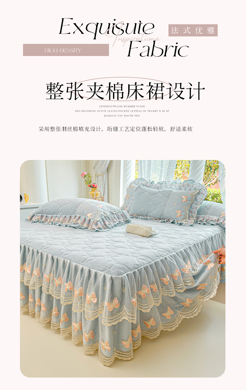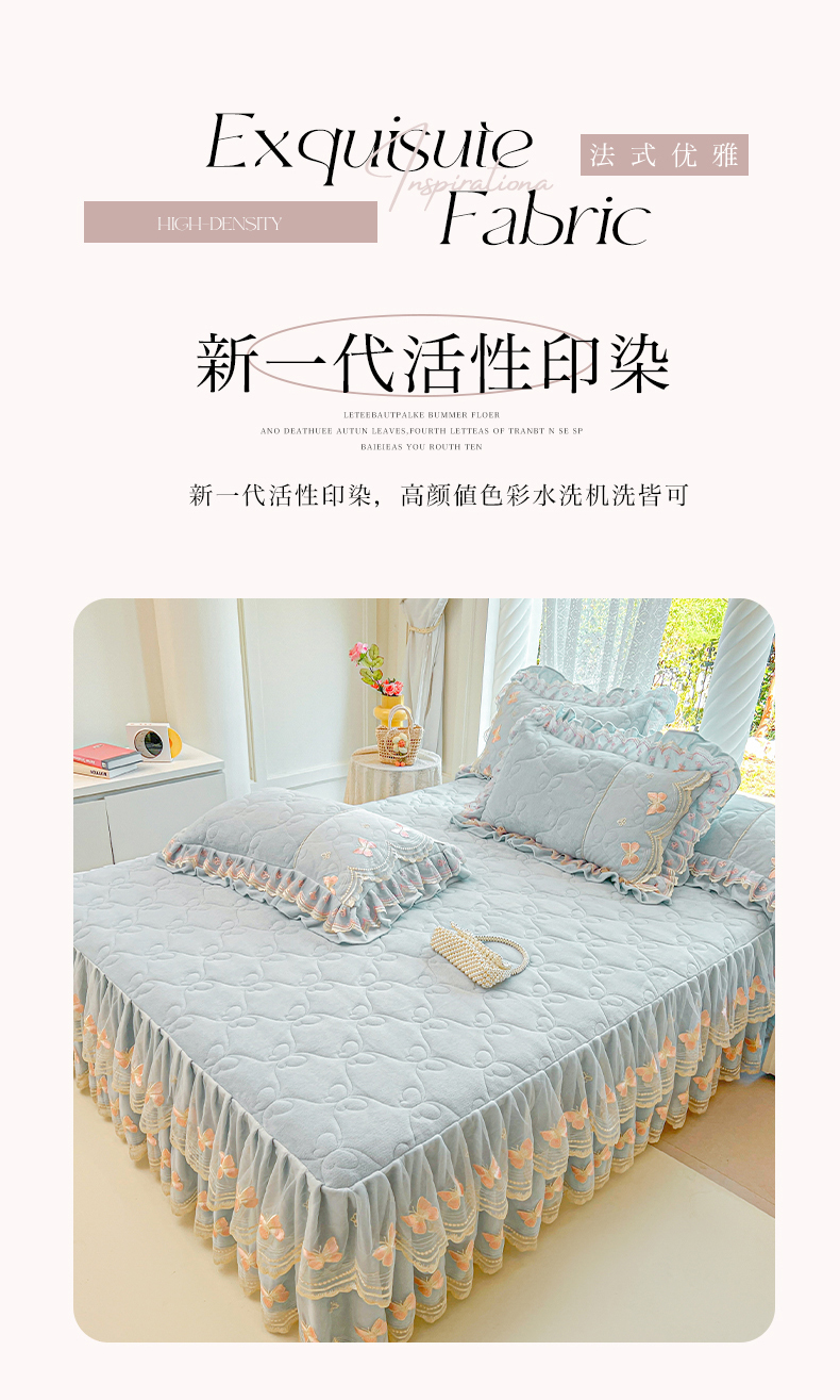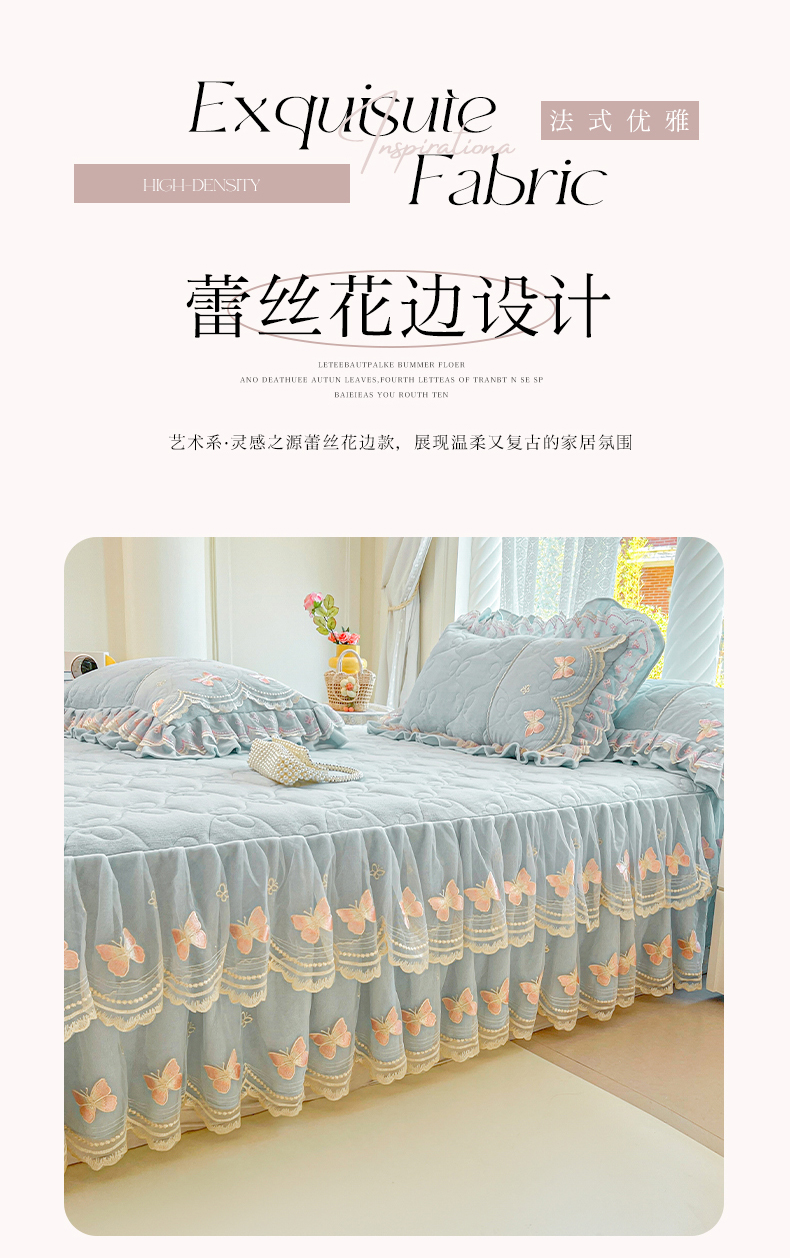 当前位置: 91家纺网 > 商品网购 > 床品套件 > 三件套 > 虹星家纺 2025新款花边牛奶绒床裙三件套系列 蝶恋-天空蓝