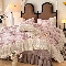 商品名称:漫布云2025秋冬新款法式复古双层花边大蕾丝水洗棉亚麻床盖款四件套全棉纯棉印花小碎花四件套 粉黛