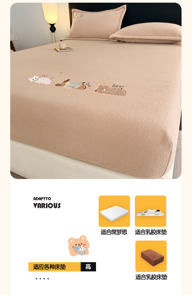 商品名称:(总)笙意家纺 2025新款A类牛奶绒海獭绒卡通刺绣床笠