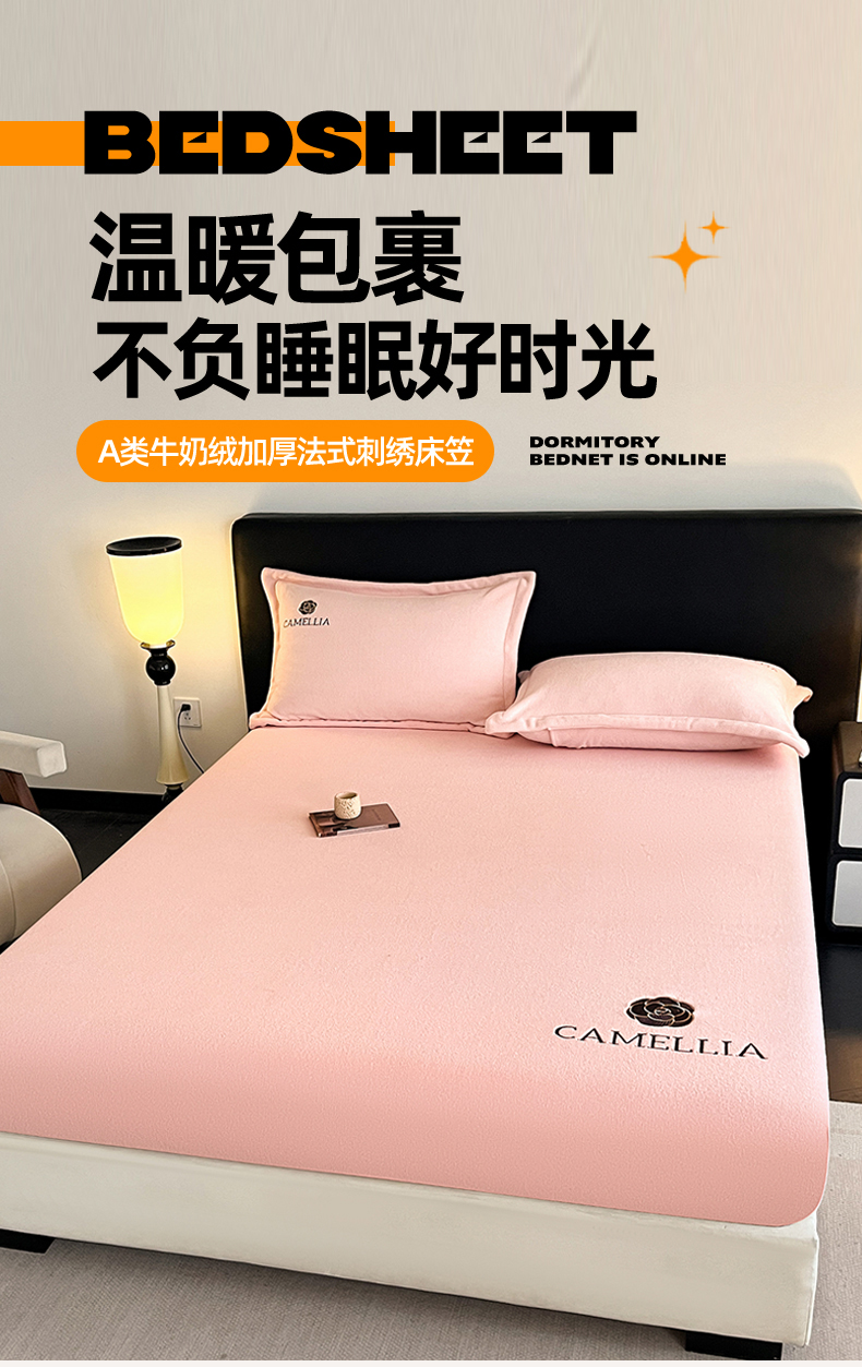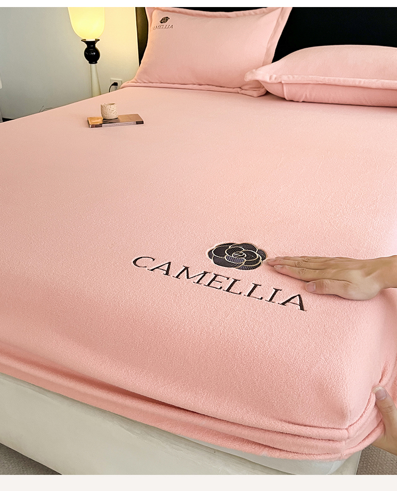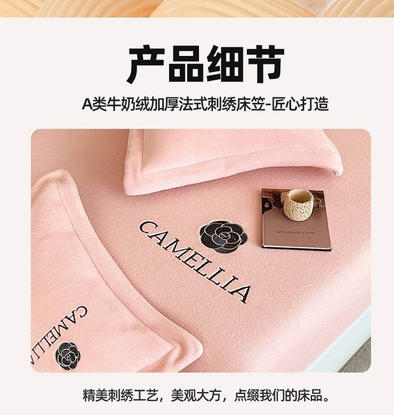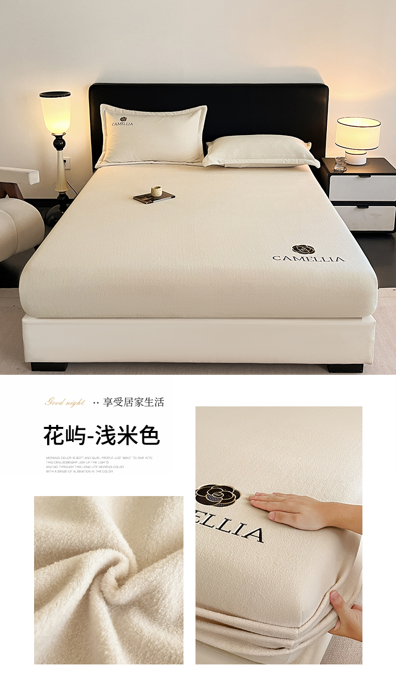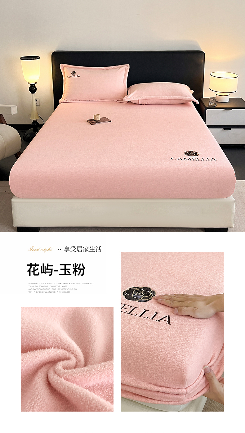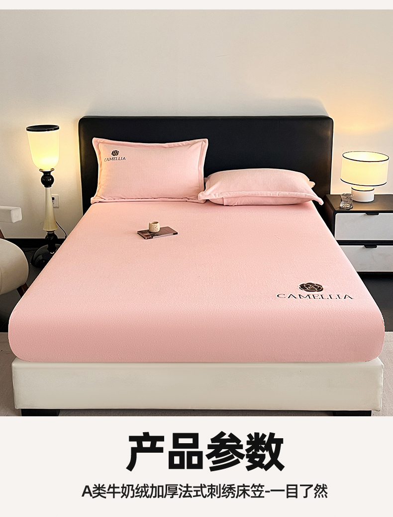 笙意家纺 2025新款A类牛奶绒海獭绒加厚法式刺绣床笠 花屿-玉粉