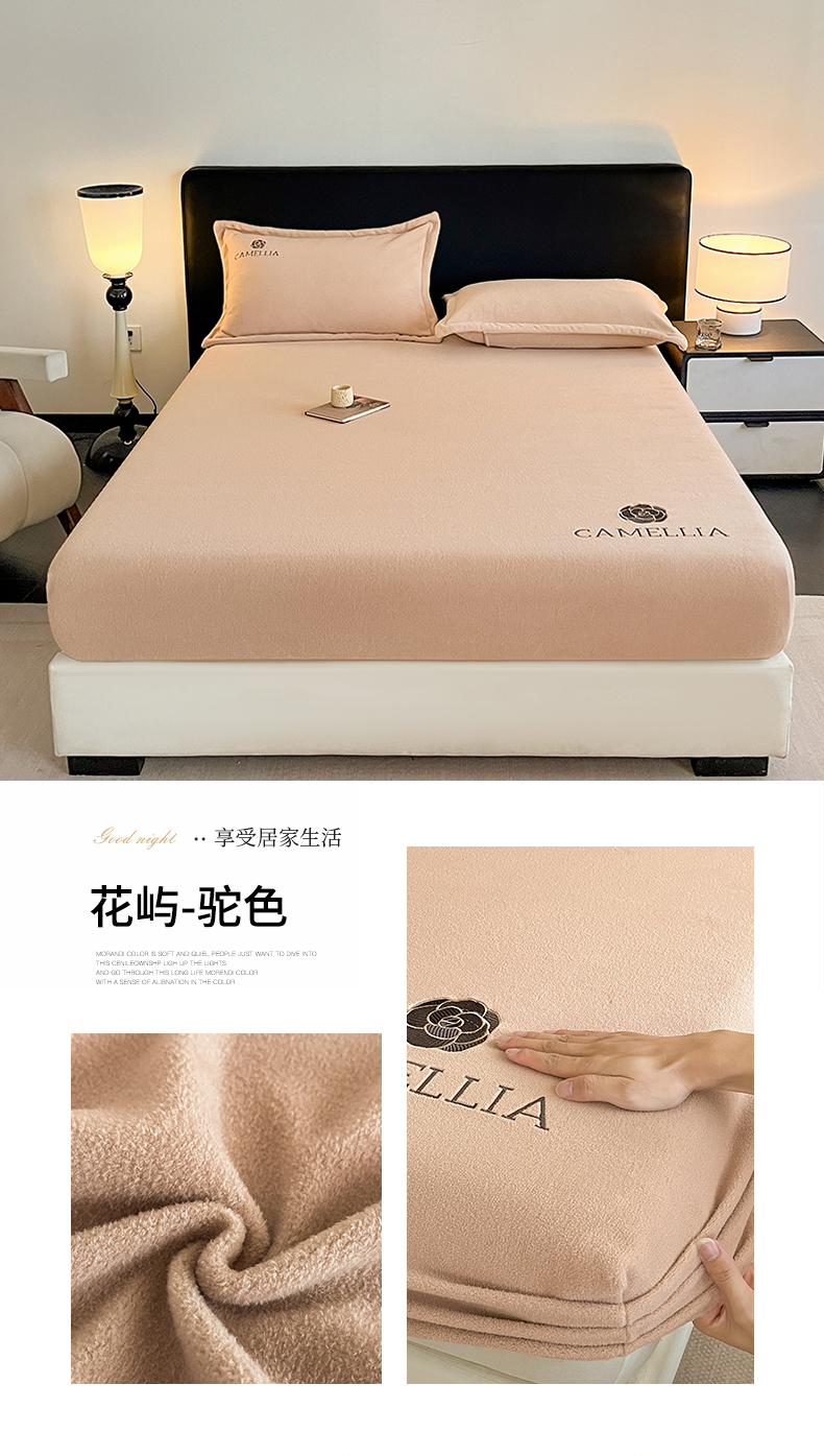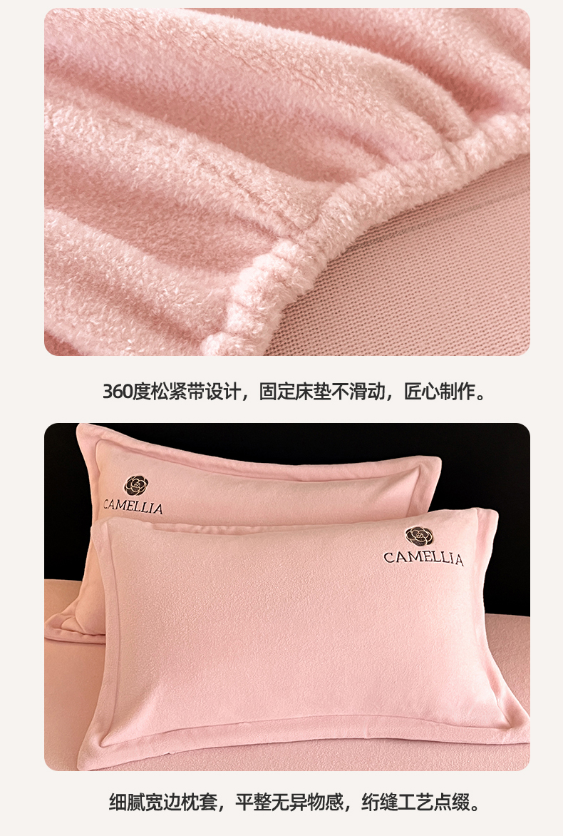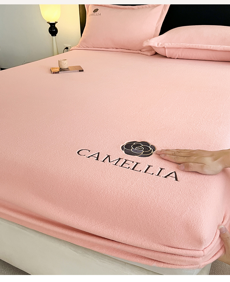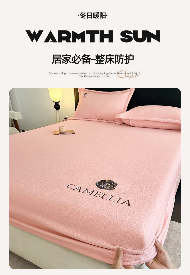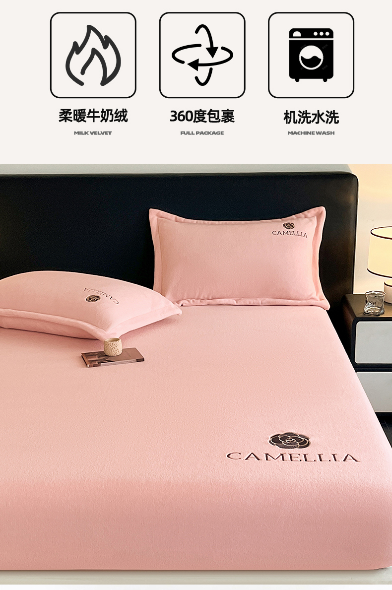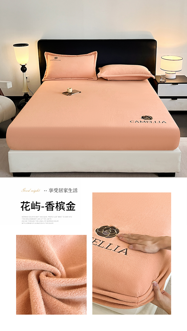 笙意家纺 2025新款A类牛奶绒海獭绒加厚法式刺绣床笠 花屿-玉粉