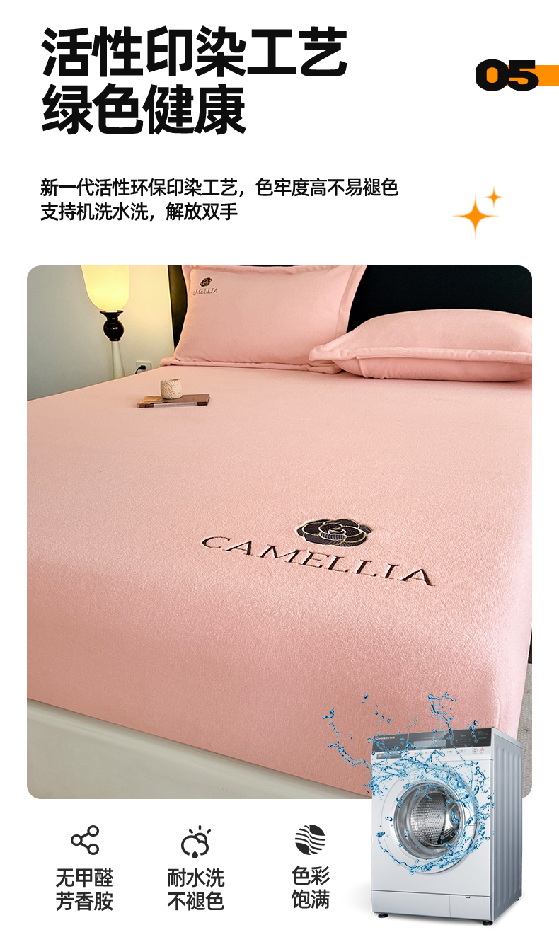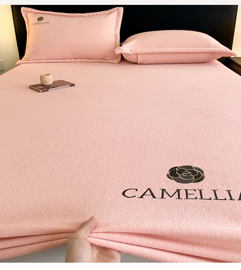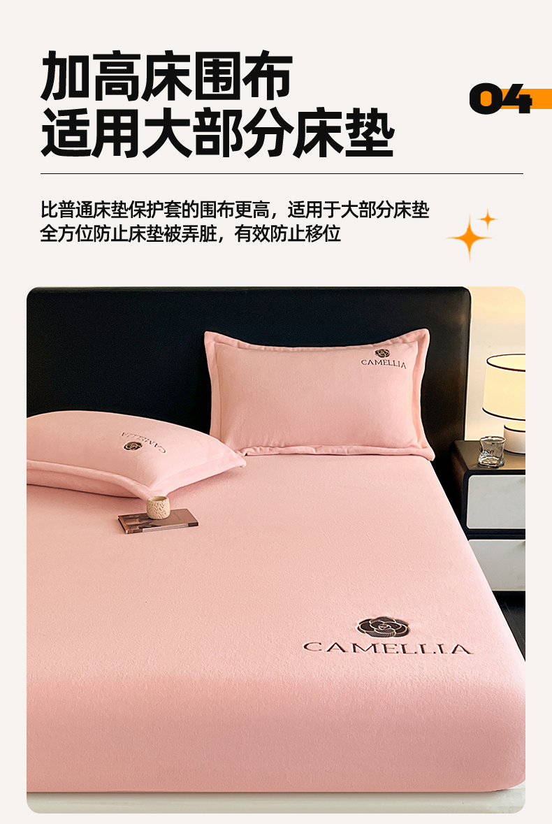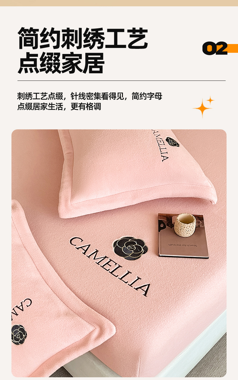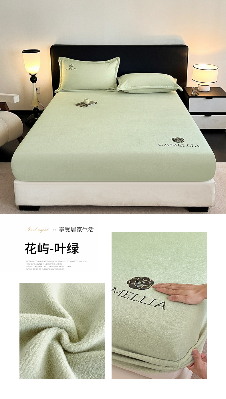 笙意家纺 2025新款A类牛奶绒海獭绒加厚法式刺绣床笠 花屿-玉粉