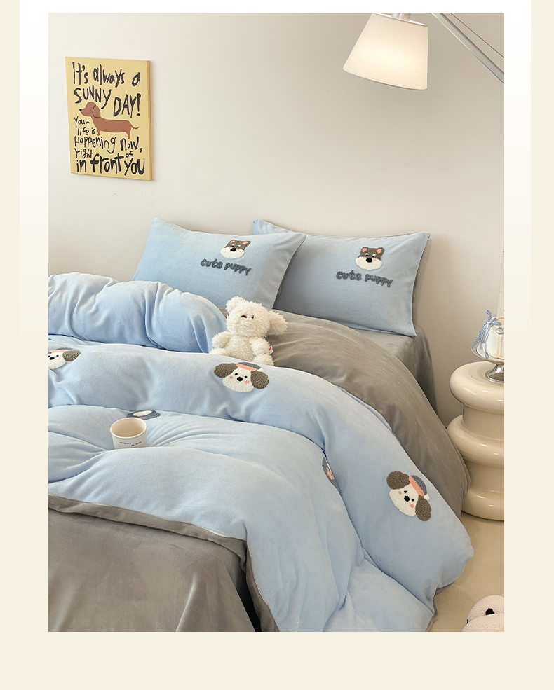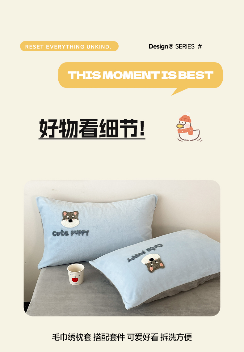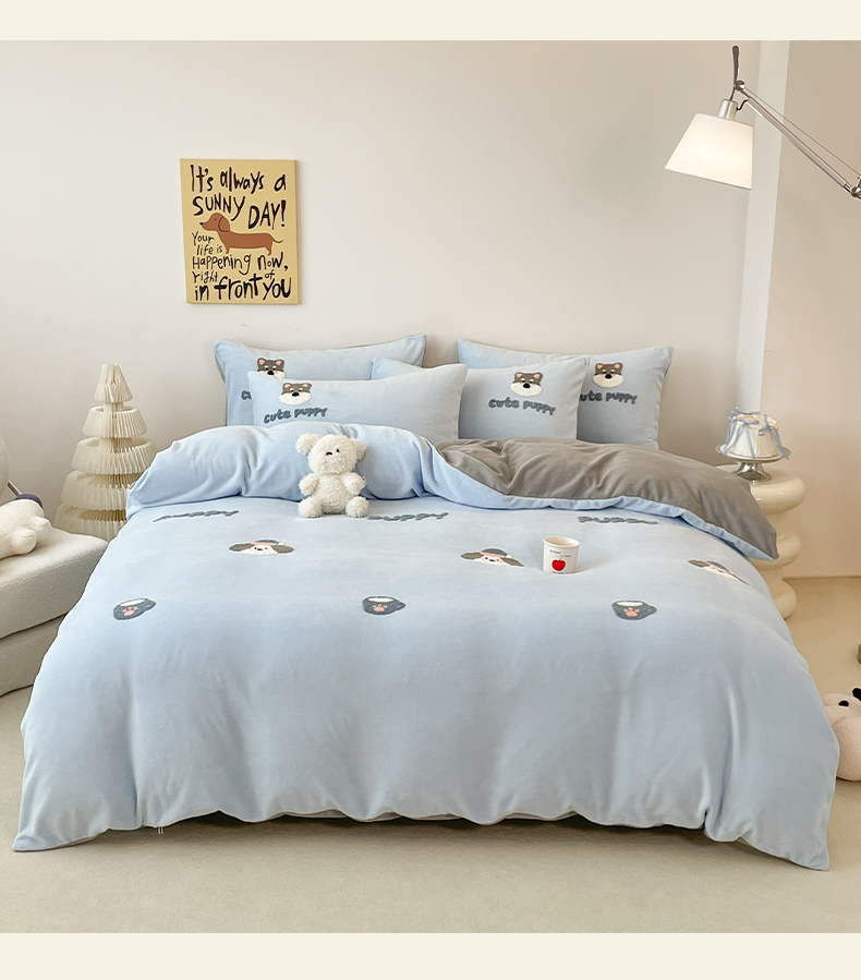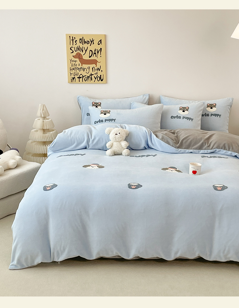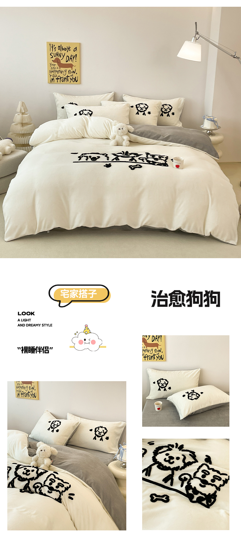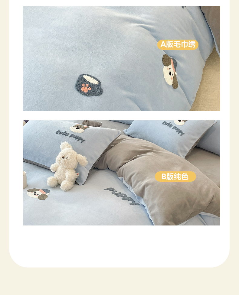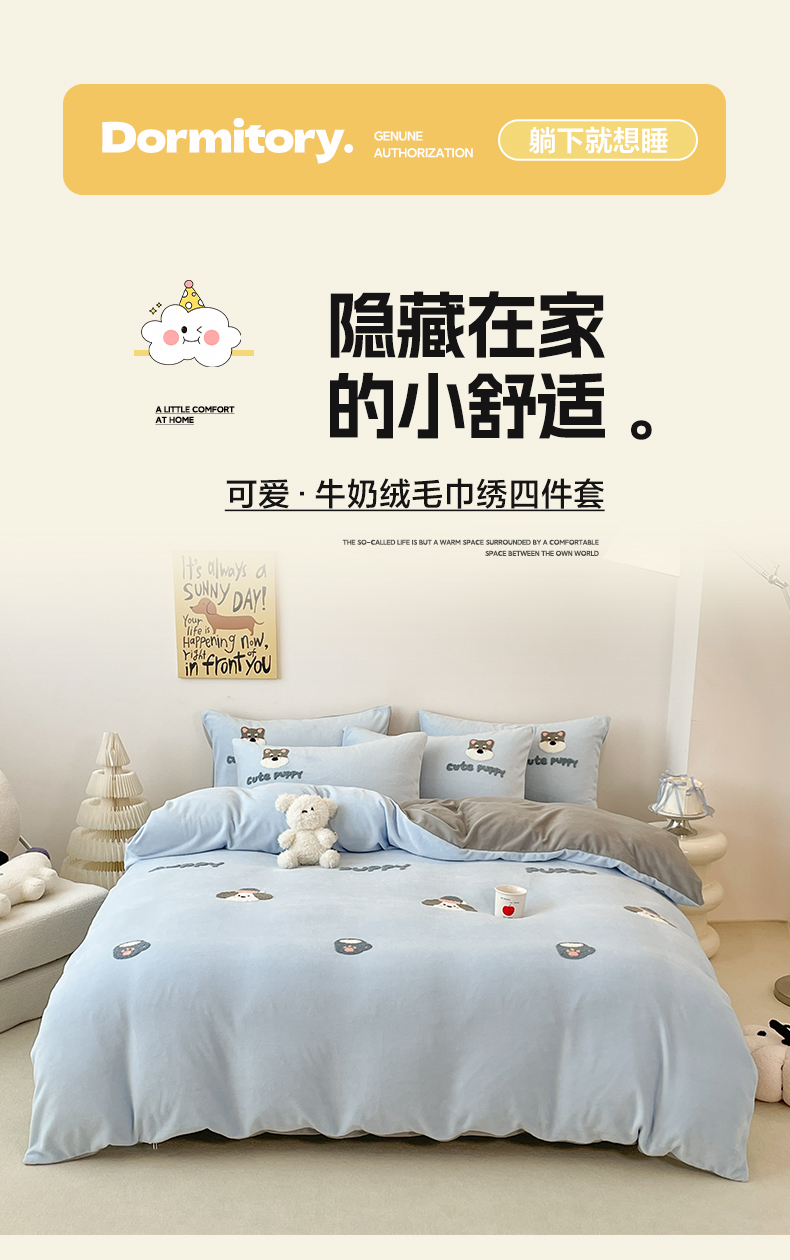 当前位置: 91家纺网 > 商品网购 > 床品套件 > 四件套 > 牛奶绒四件套 > 启发 2025新款牛奶绒毛巾绣四件套场景一 幸福小狗