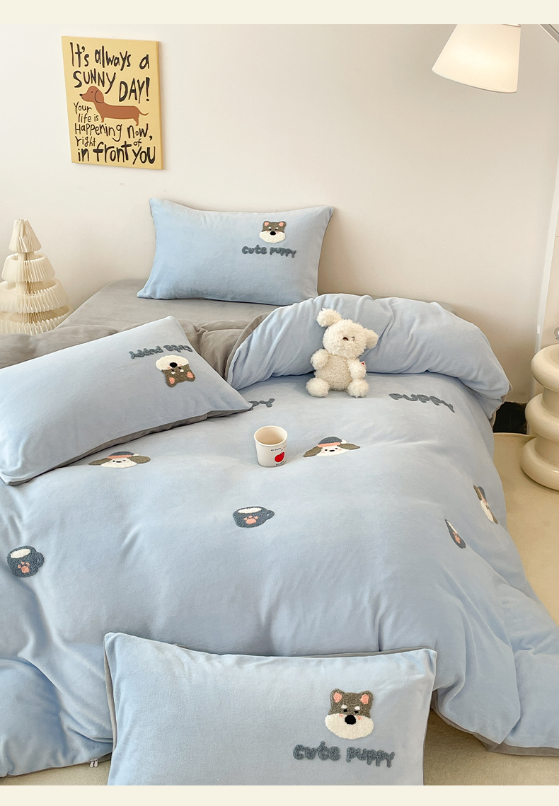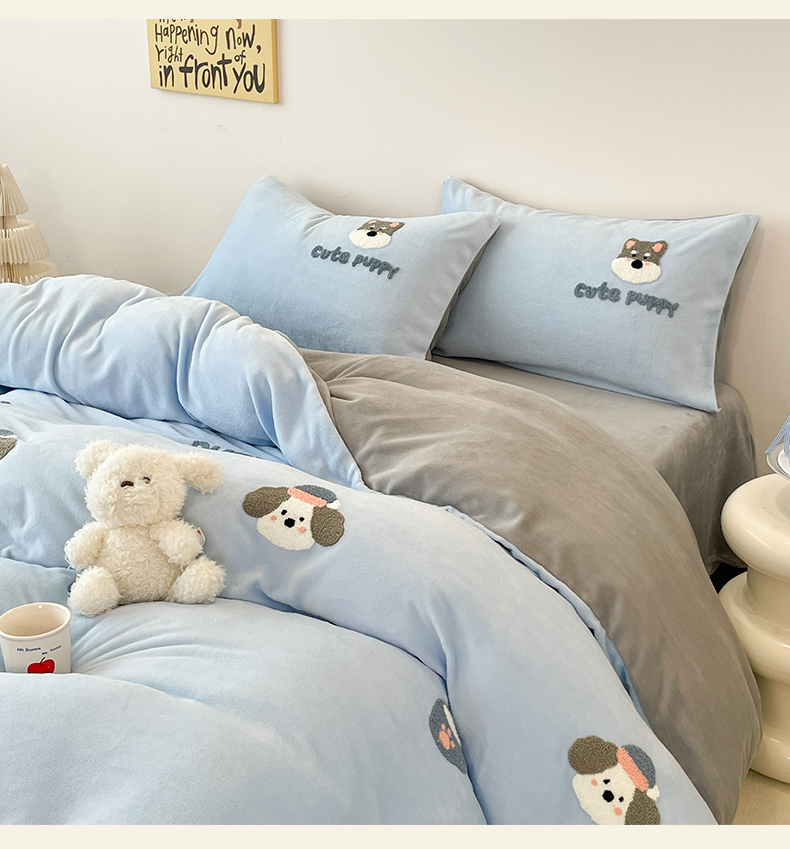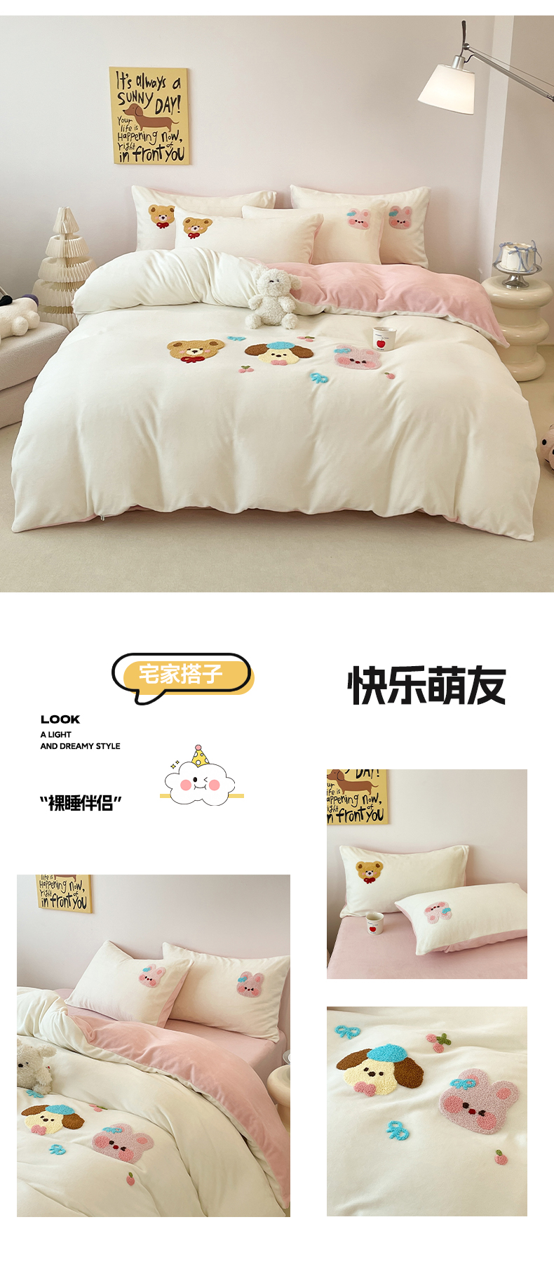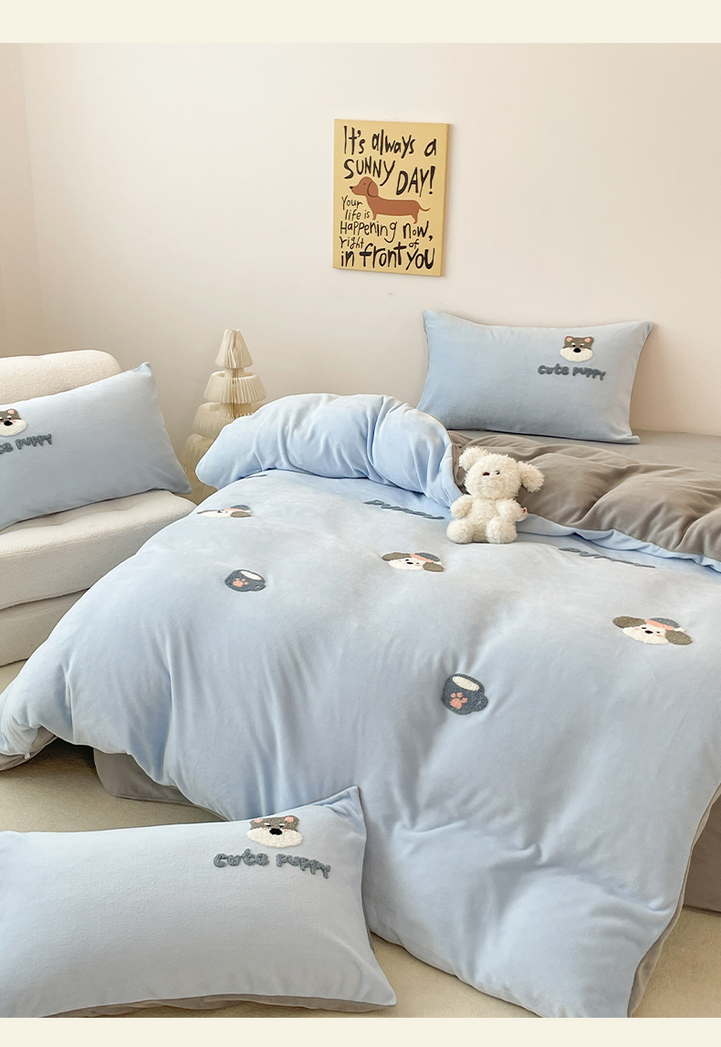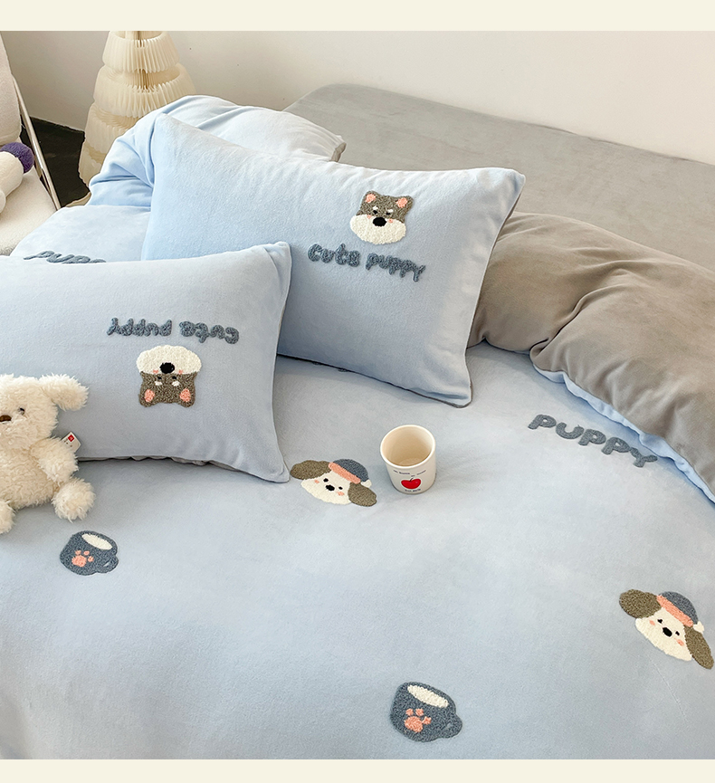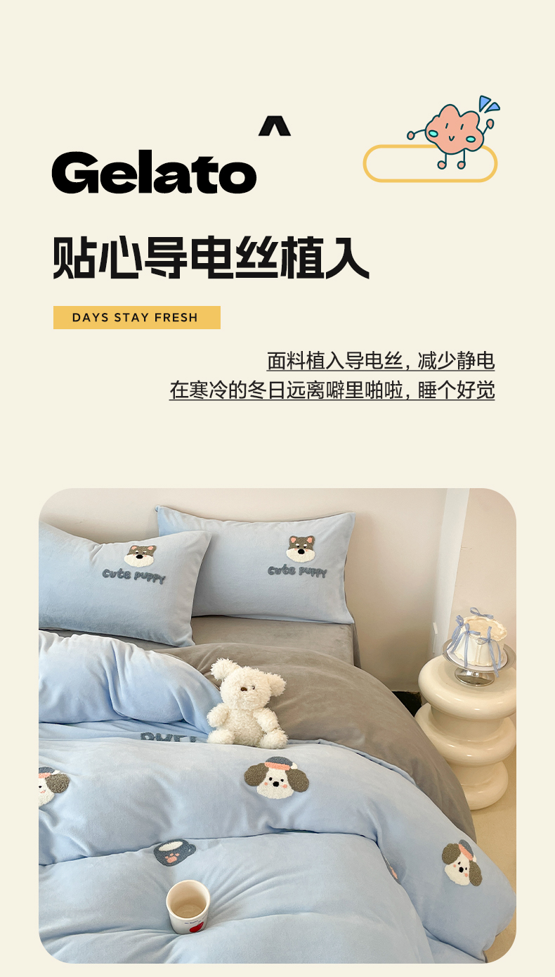 当前位置: 91家纺网 > 商品网购 > 床品套件 > 四件套 > 牛奶绒四件套 > 启发 2025新款牛奶绒毛巾绣四件套场景一 幸福小狗