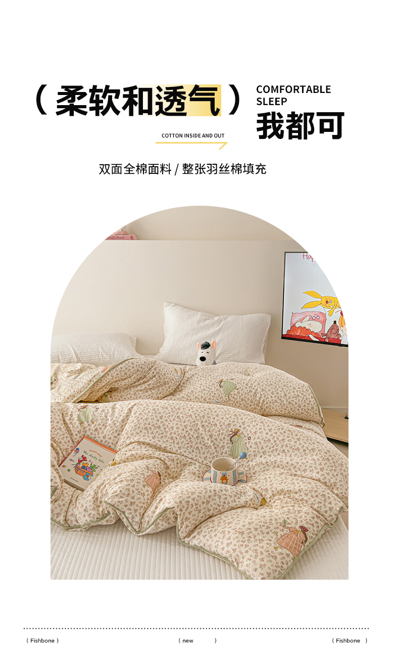 (总)漫仙阁家纺 2025年新款烫画糯糯棉被子春秋被冬被 单人双人被子,邻家女孩,狗狗家族,花仙子,兔小姐,小浣熊,小青蛙
