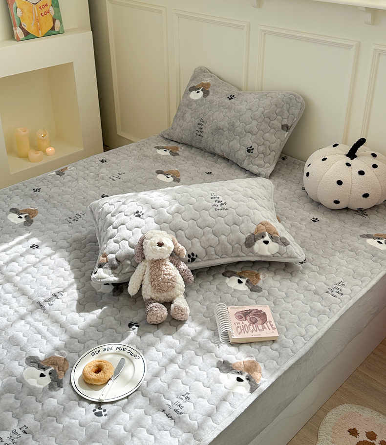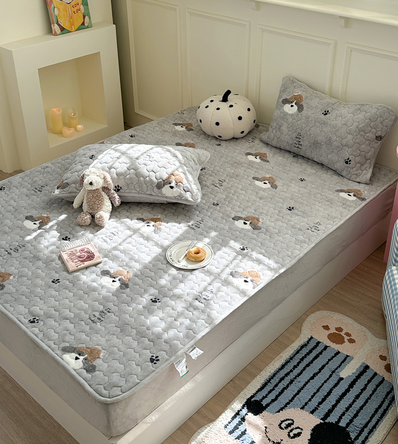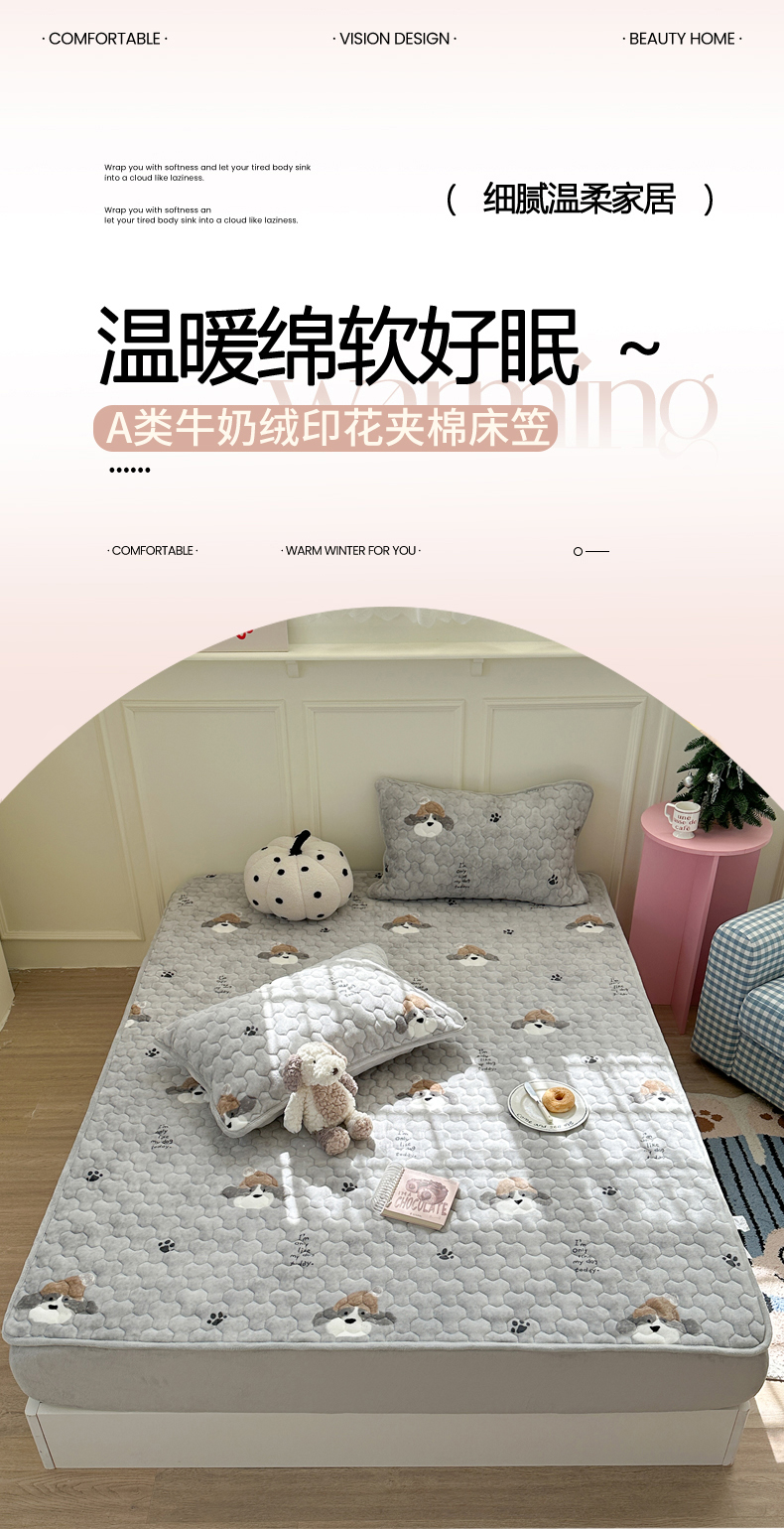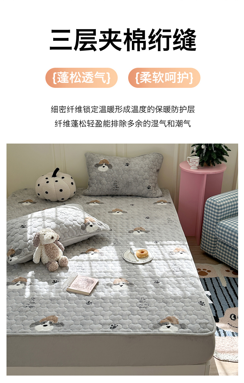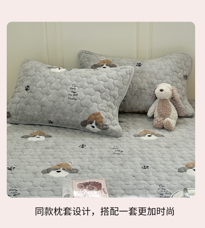 商品名称:Sweet dreams甜梦 2025新款高克重牛奶绒印花夹棉床笠 帽子狗狗
