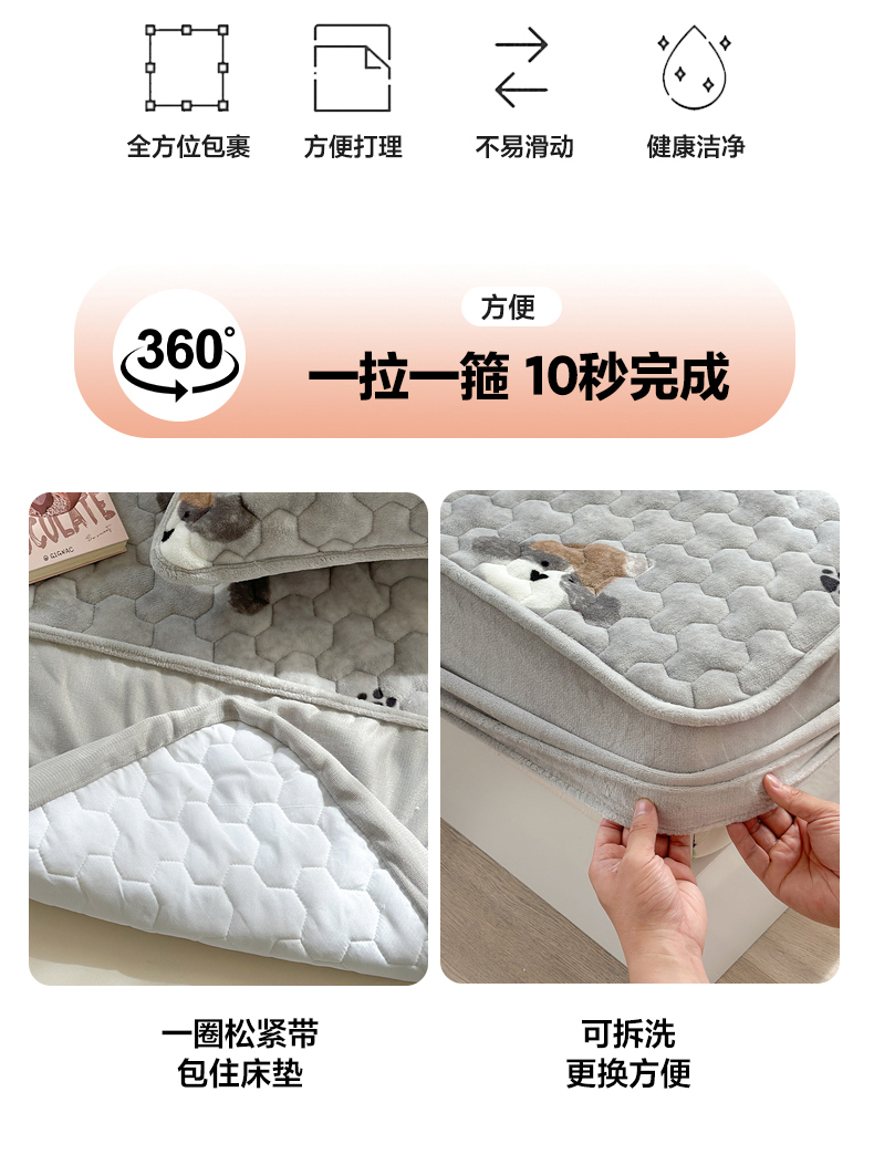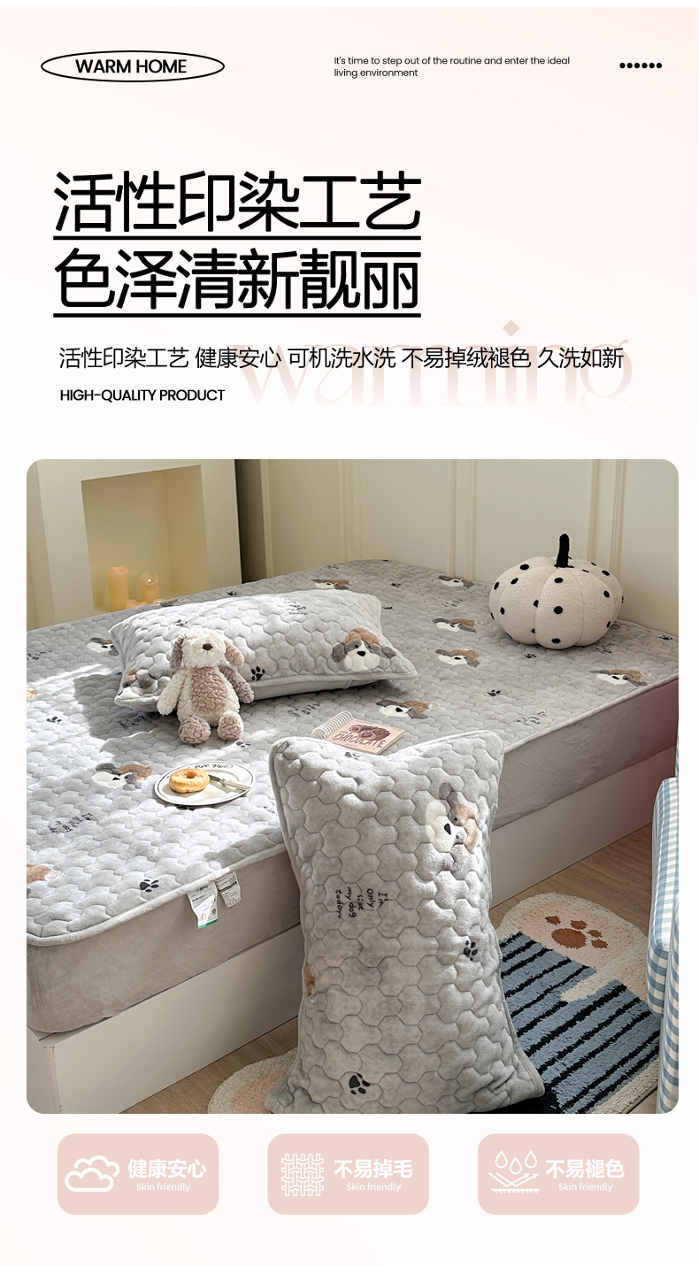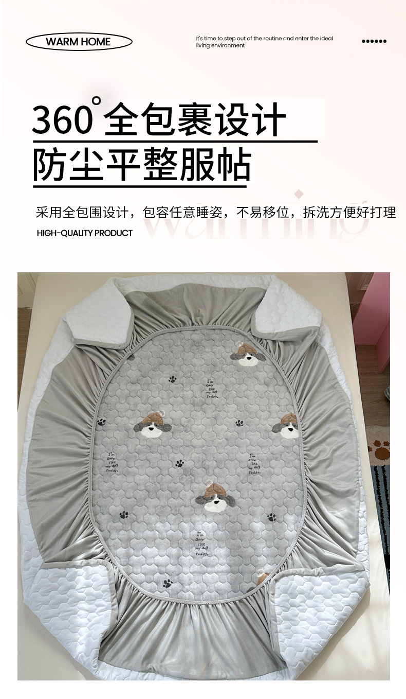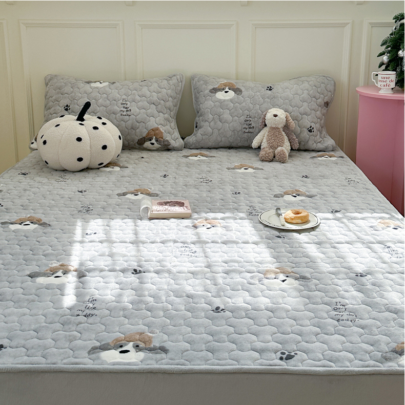 商品名称:Sweet dreams甜梦 2025新款高克重牛奶绒印花夹棉床笠 帽子狗狗