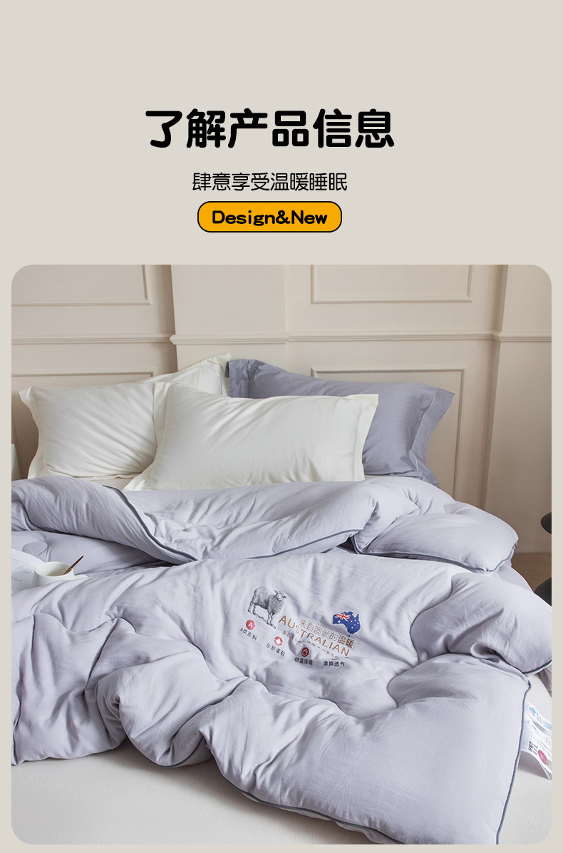 • 91家纺网 家纺一手货源 找家纺 紫乐家纺 2025新款水洗棉澳洲羊毛被秋冬保暖款被子被芯春秋被加厚保暖冬被 灰色