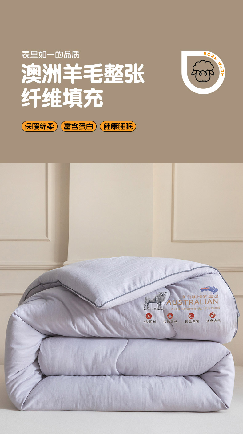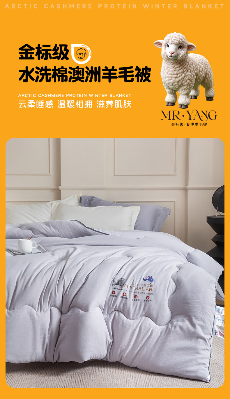当前位置: 91家纺网 > 商品网购 > 被子 > 冬被 > 紫乐家纺 2025新款水洗棉澳洲羊毛被秋冬保暖款被子被芯春秋被加厚保暖冬被 灰色