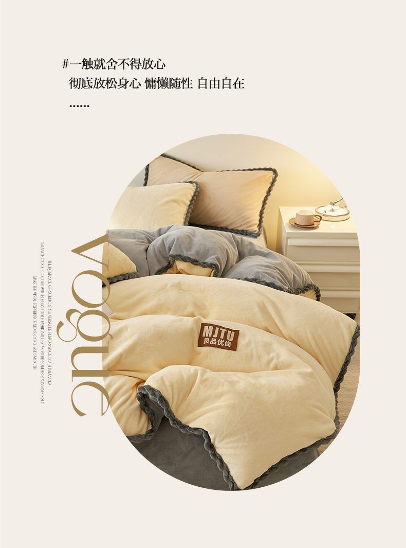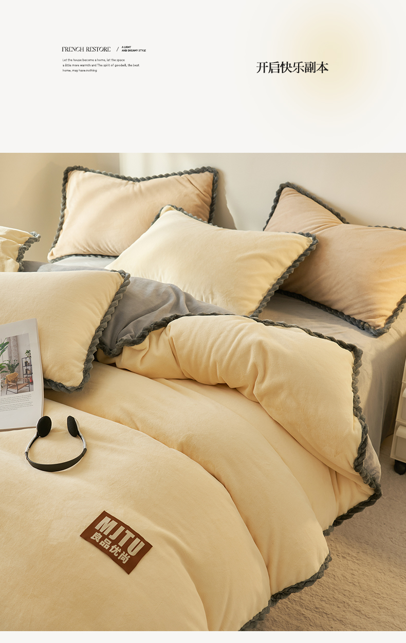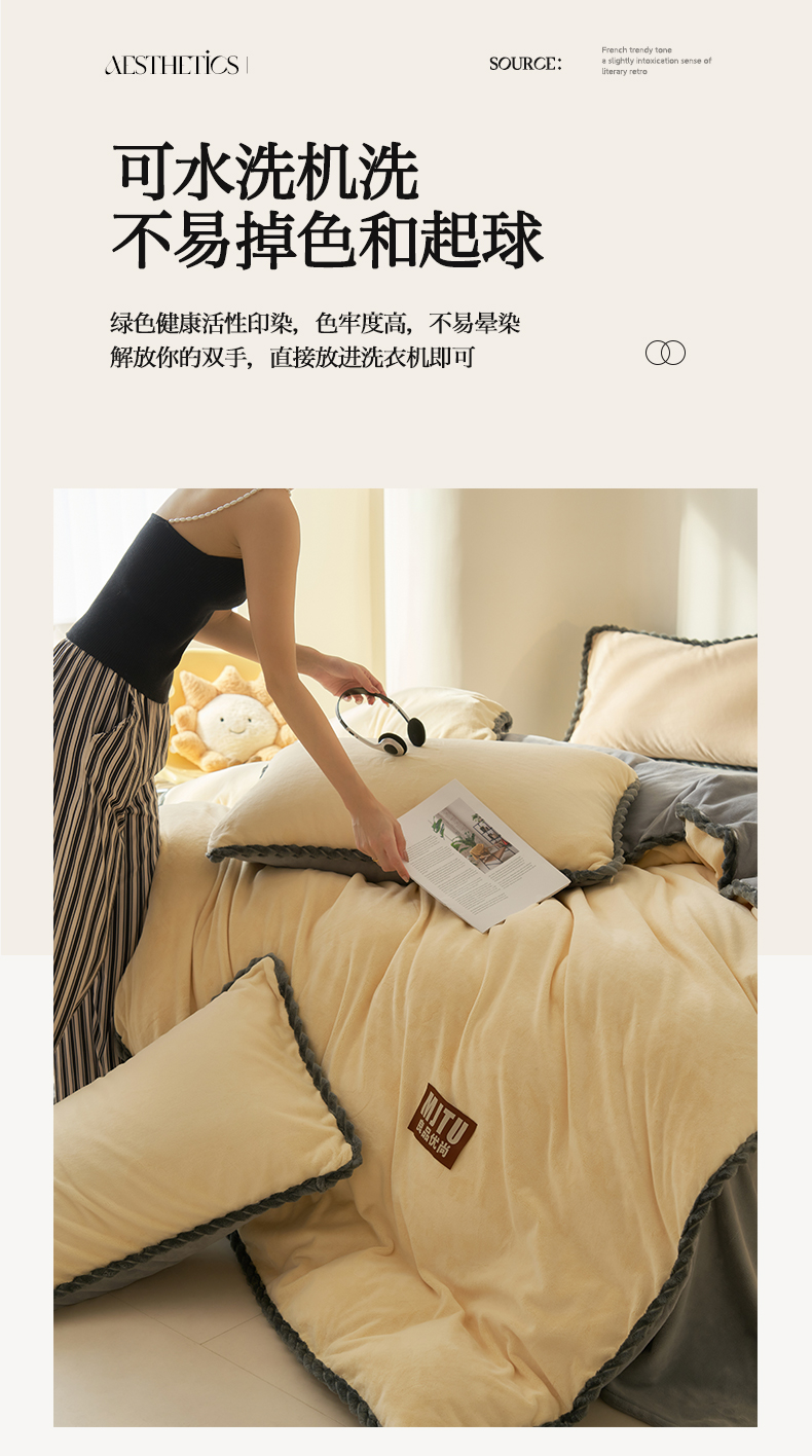 • 91家纺网 家纺一手货源 找家纺 晨曦家纺 2025新款加厚高克重230克日系简约小包边牛奶绒单被套 简约-奶黄