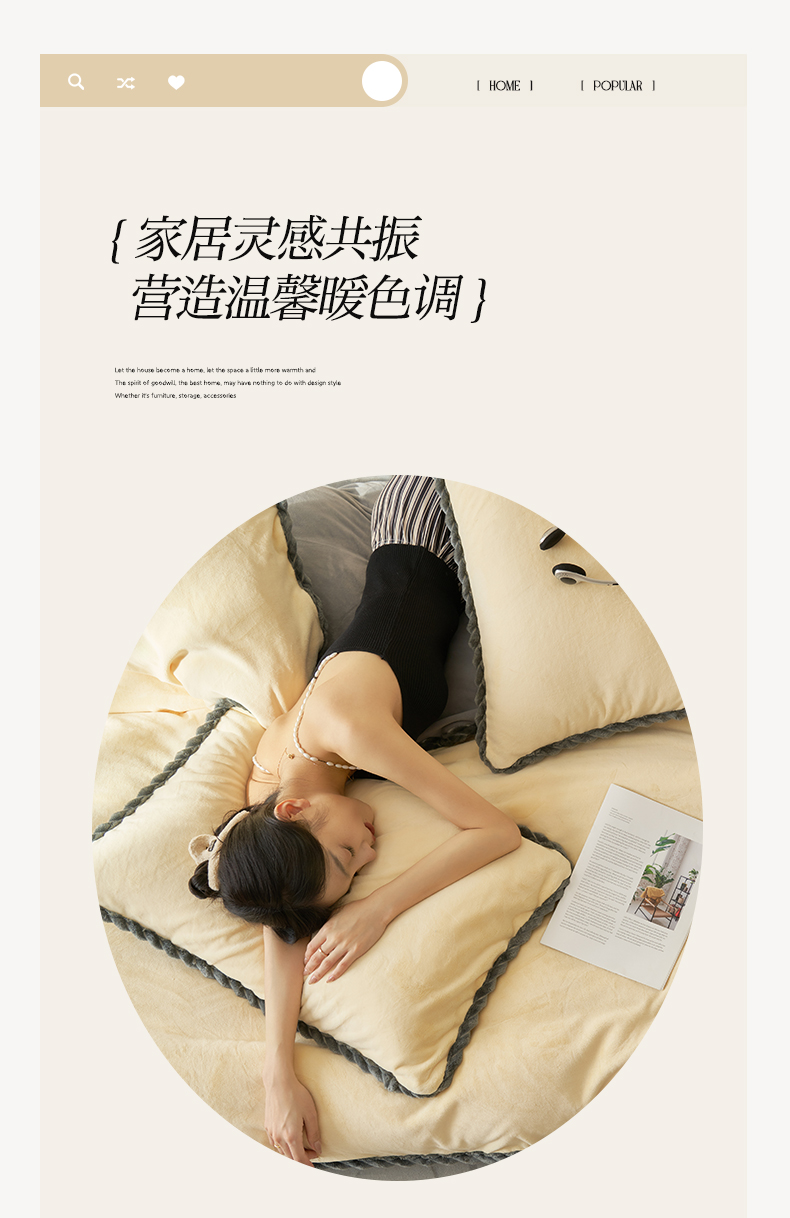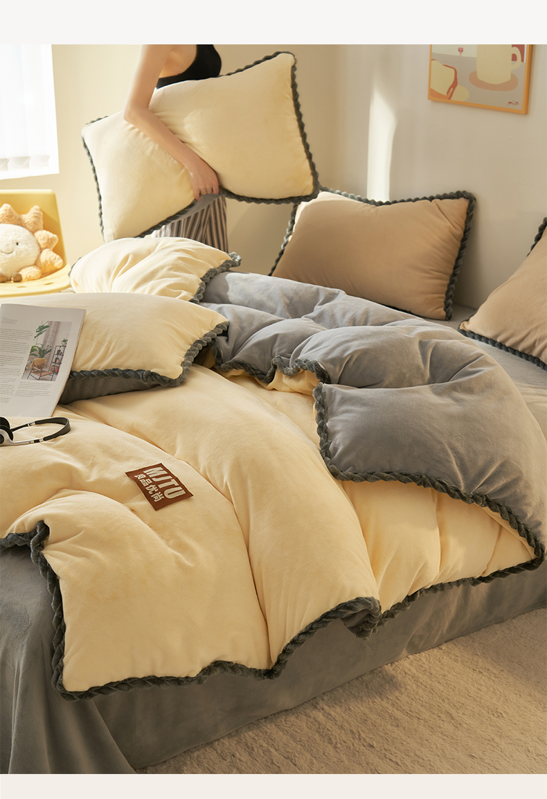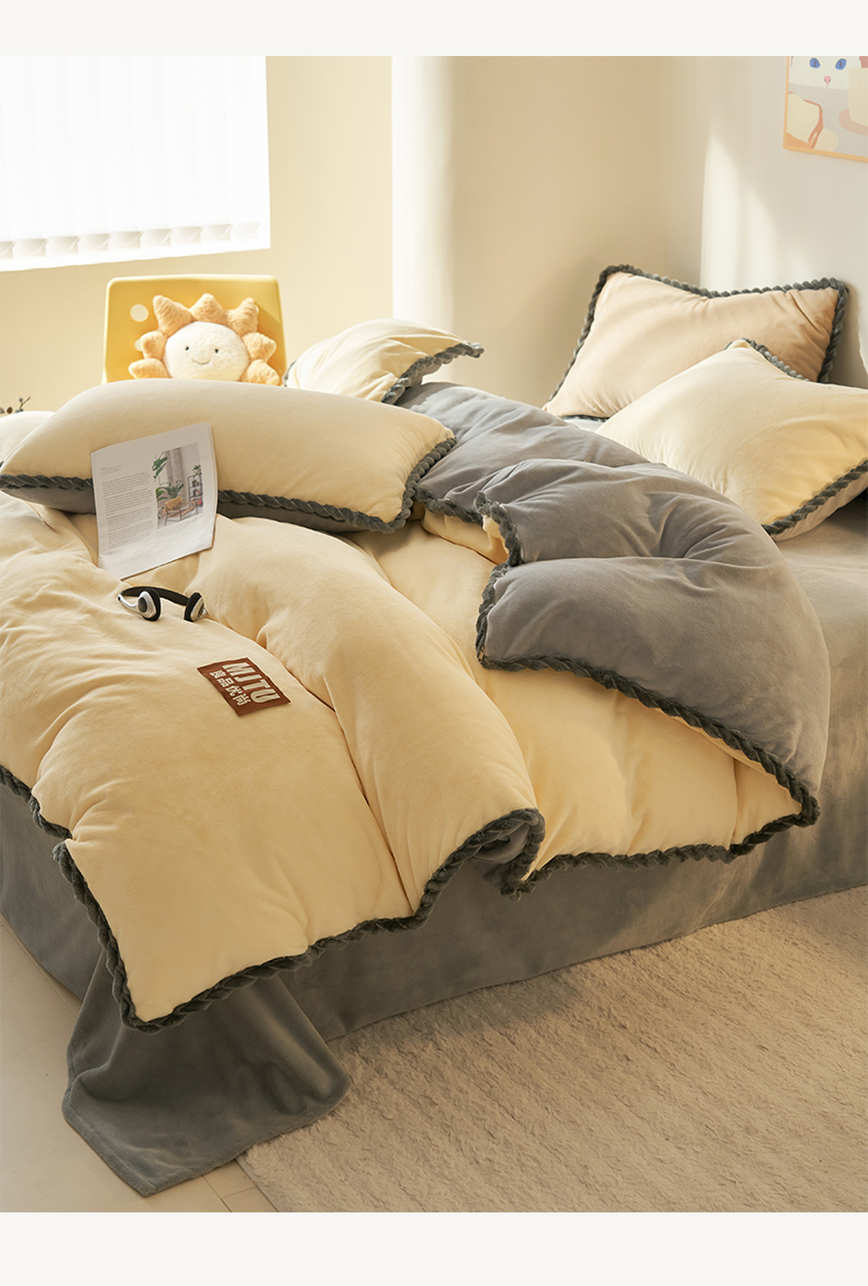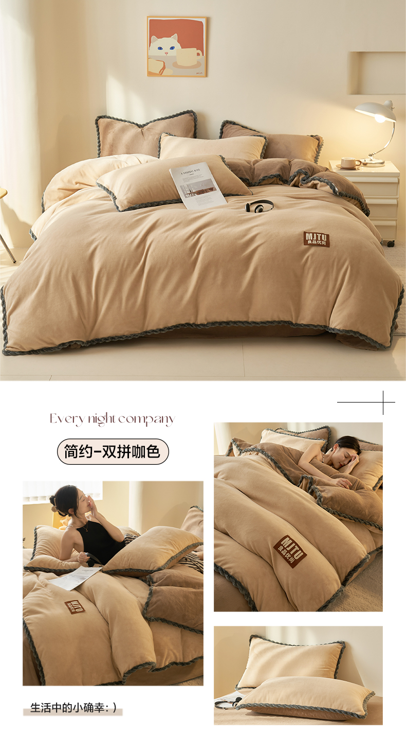 • 91家纺网 家纺一手货源 找家纺 晨曦家纺 2025新款加厚高克重230克日系简约小包边牛奶绒单被套 简约-奶黄