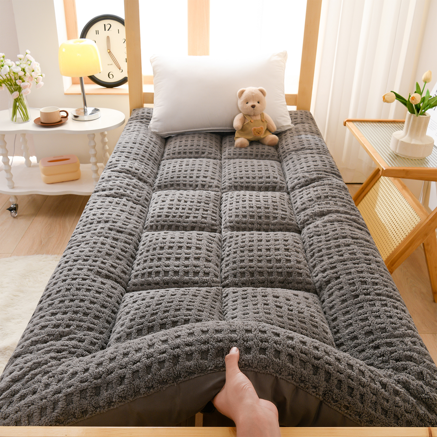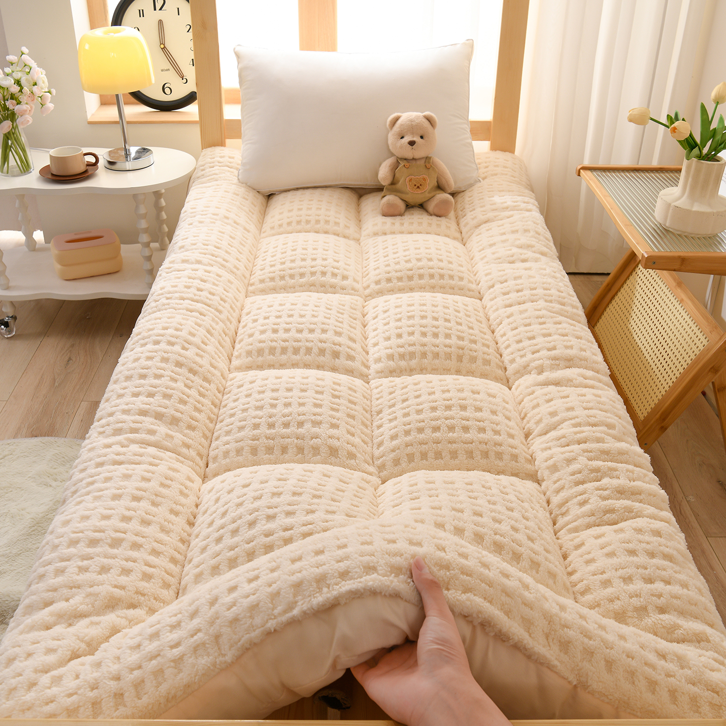 小叮当家纺仓储工厂店 2025新款A类提花牛奶绒塔芙绒单床垫床垫单品跨境-方格 学生床 方格浅粉
