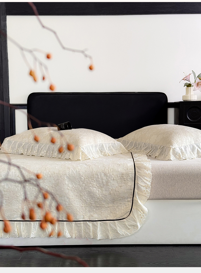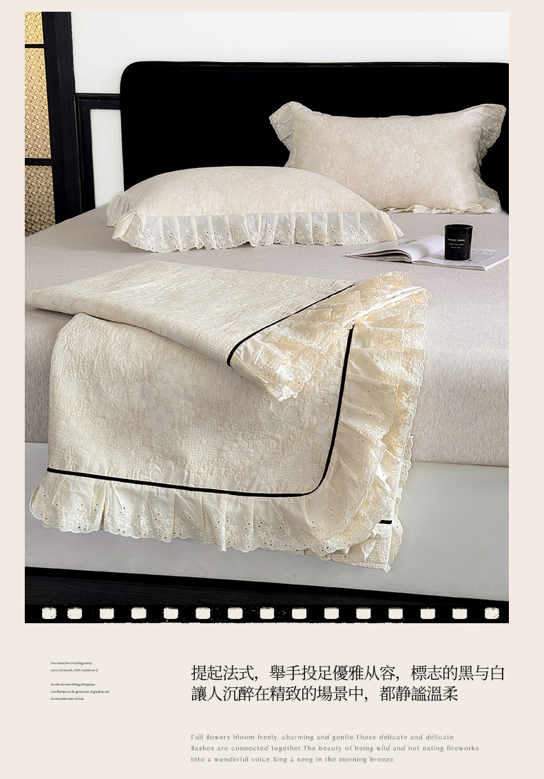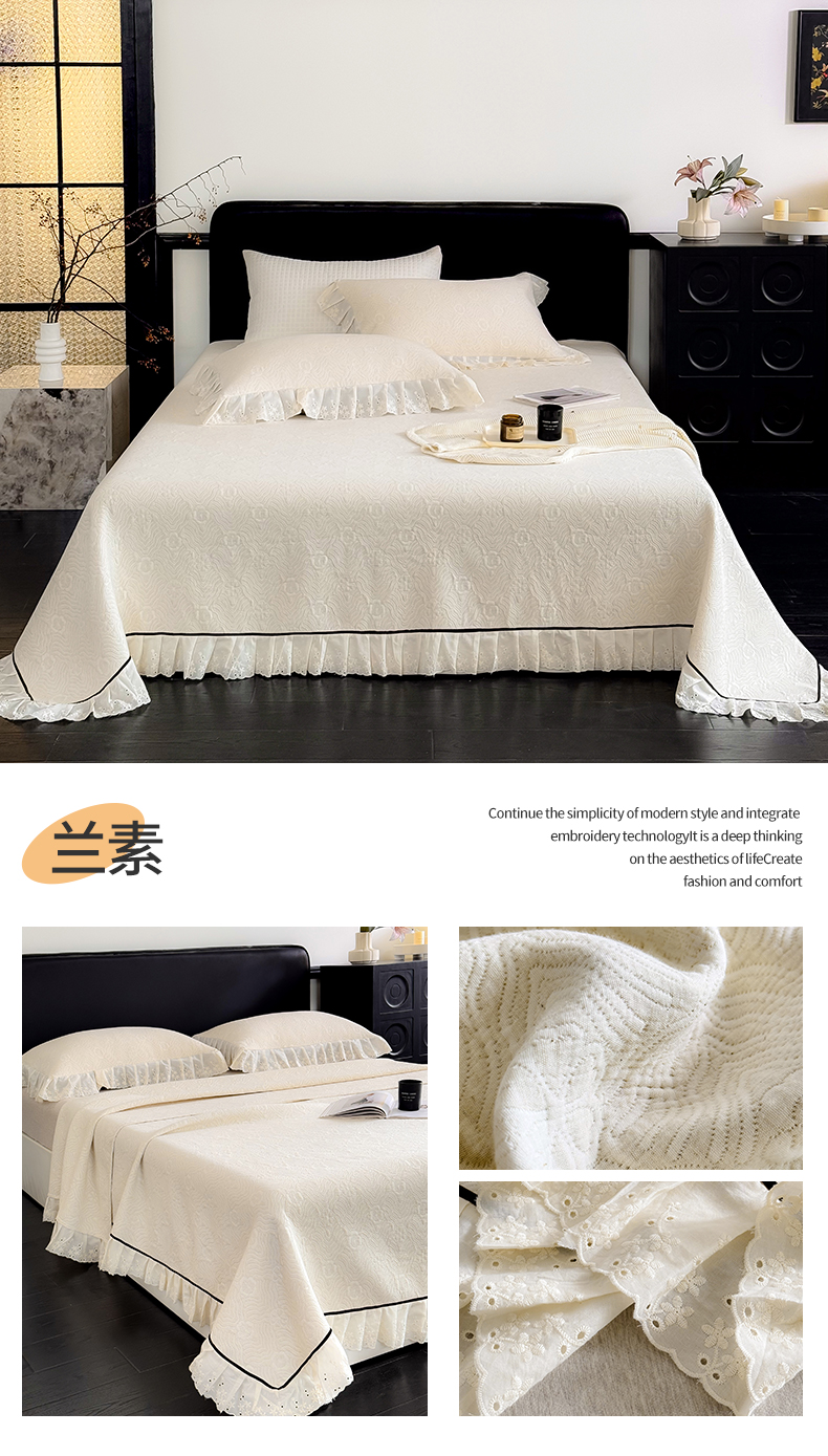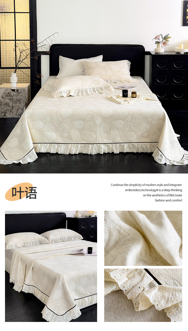 商品名称:金鹰 2025新款A类全棉花边棉麻空气层床盖 花边床盖-叶语