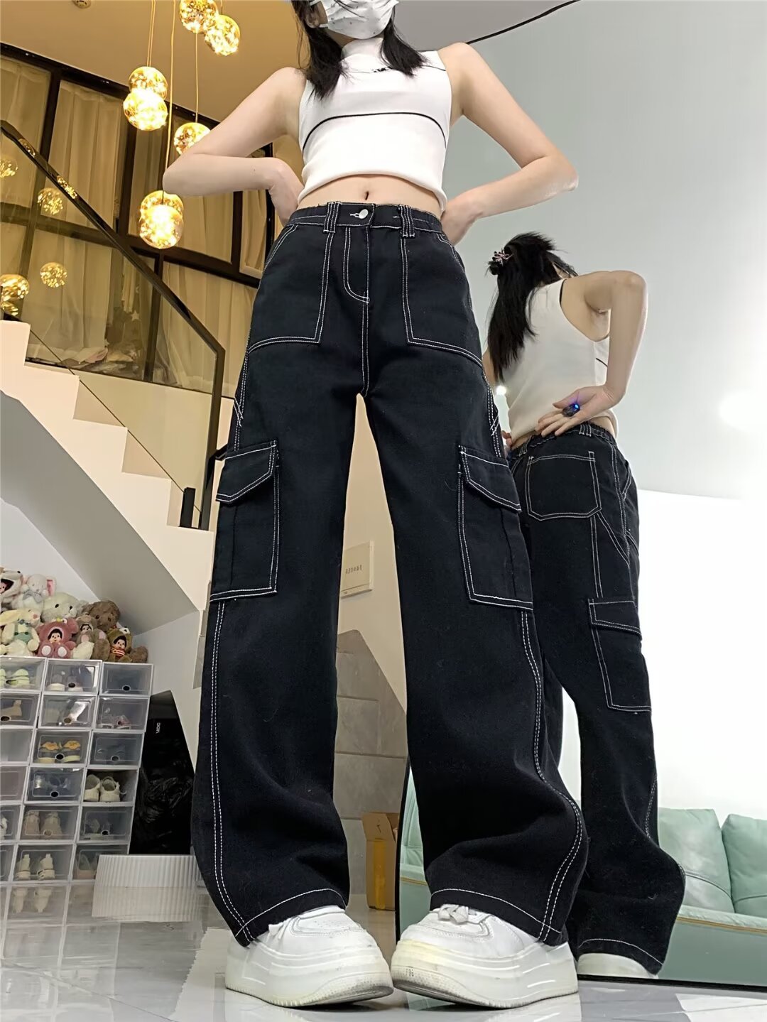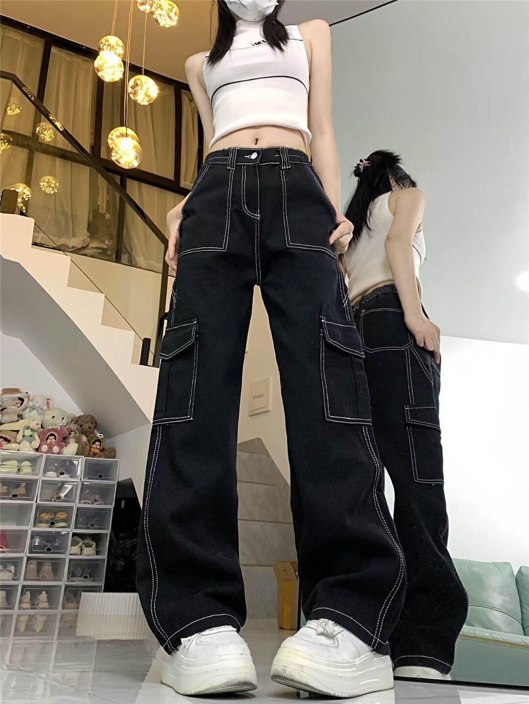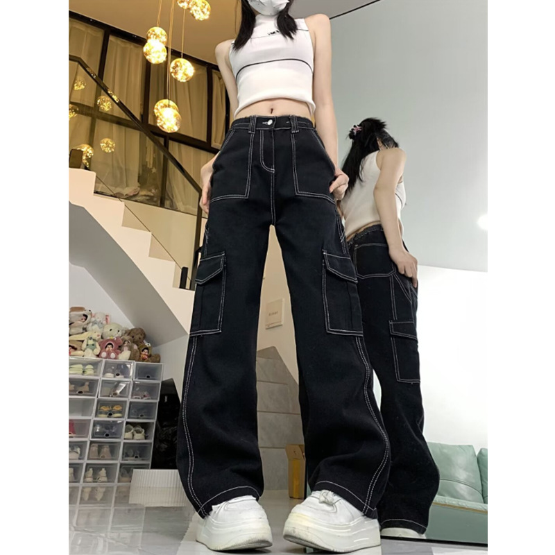 商品名称:(总)洛兰沙家居馆【只代发】【只代发】 2025新款只代发美式工装牛仔裤女早春新款直筒阔腿高腰显瘦裤子宽松休闲长裤批发26