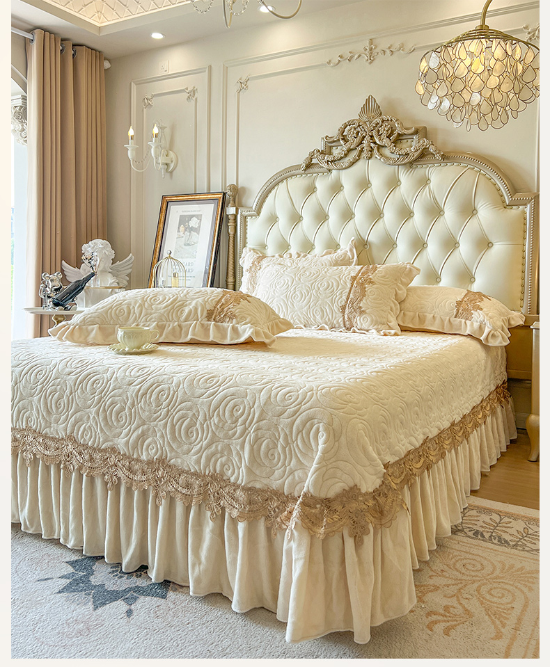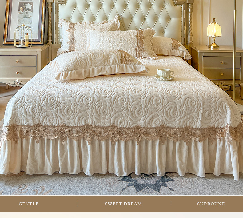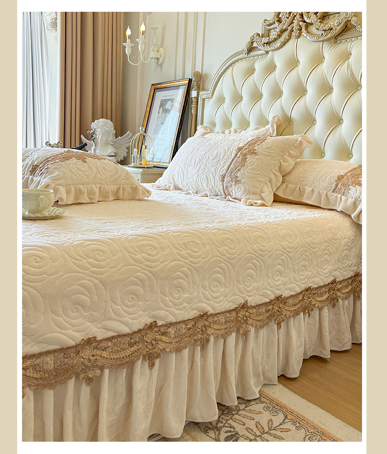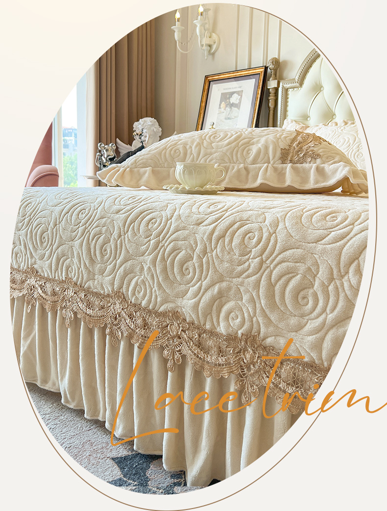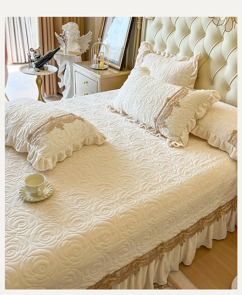 商品名称:恋尚 2025新款雕花牛奶绒罗曼蒂克系列床盖床裙三件套(控价145) 罗曼蒂克-奶油白