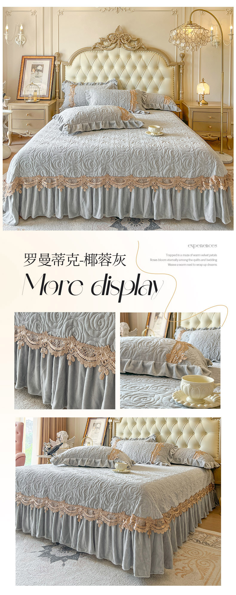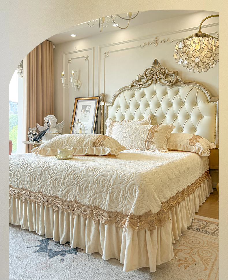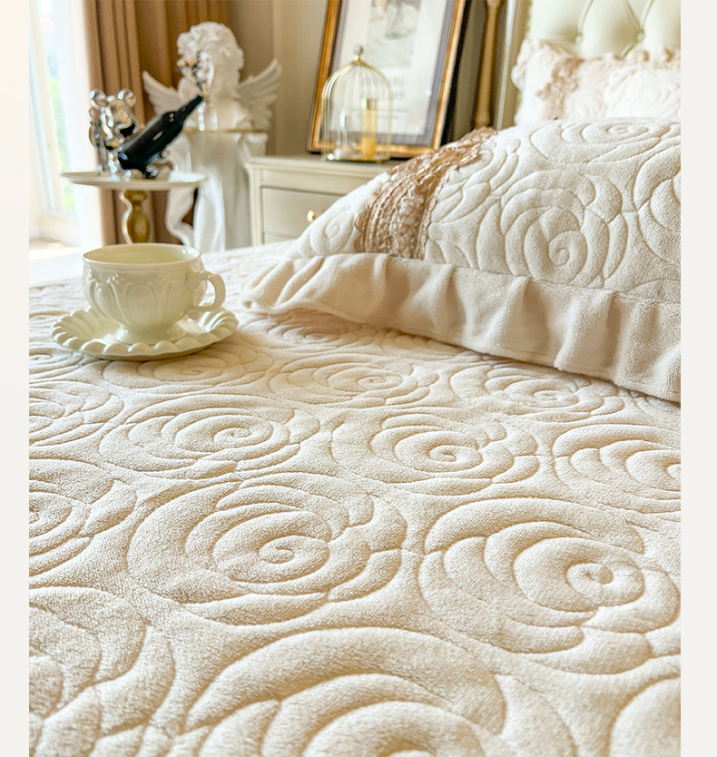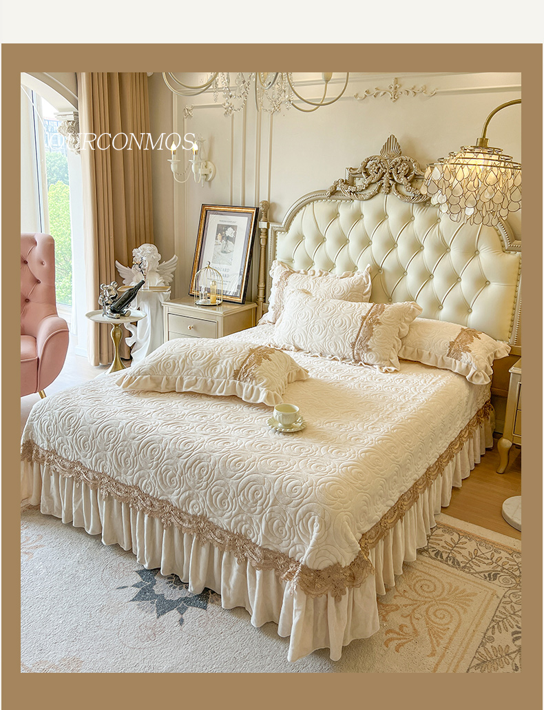 商品名称:恋尚 2025新款雕花牛奶绒罗曼蒂克系列床盖床裙三件套(控价145) 罗曼蒂克-奶油白