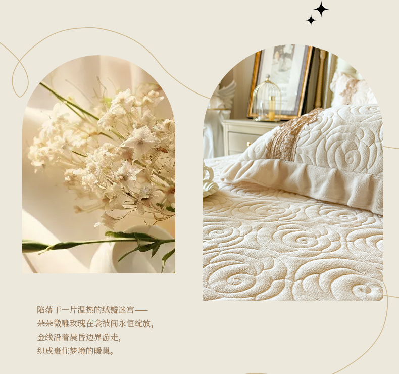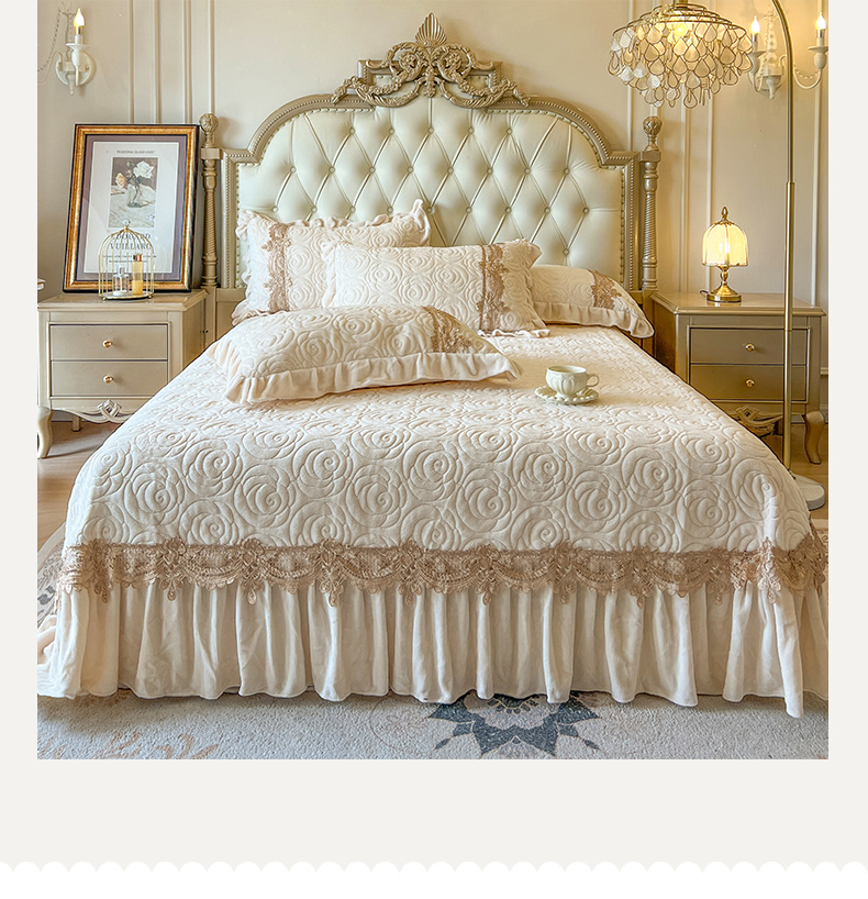 恋尚 2025新款雕花牛奶绒罗曼蒂克系列床盖床裙三件套(控价145) 罗曼蒂克-奶油白