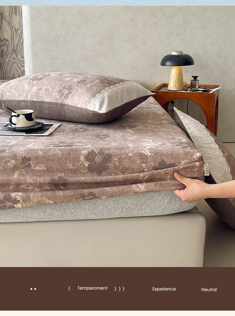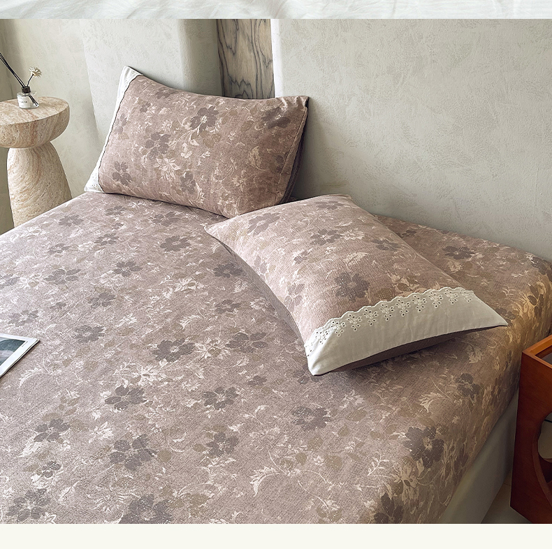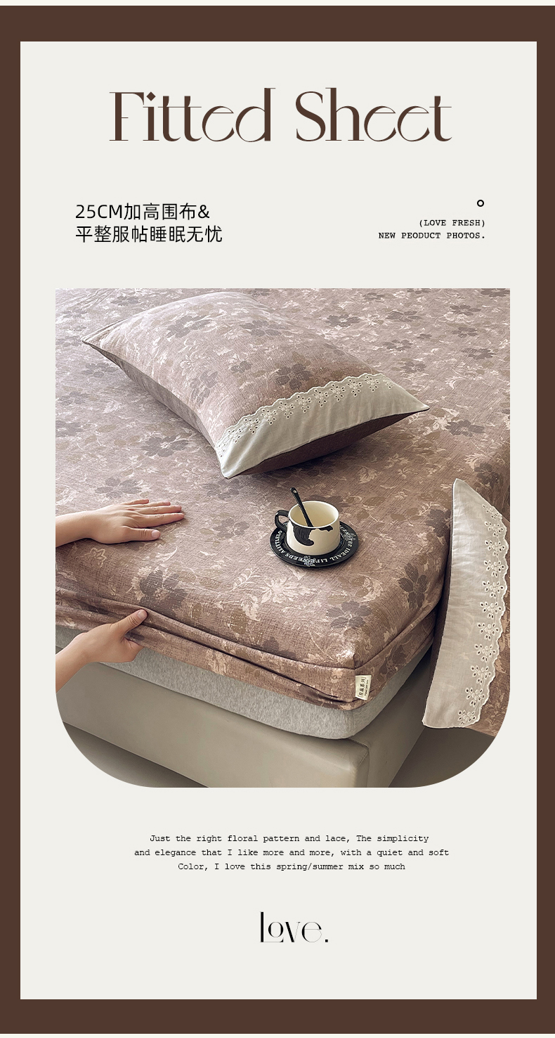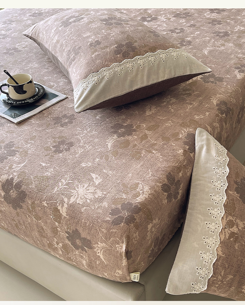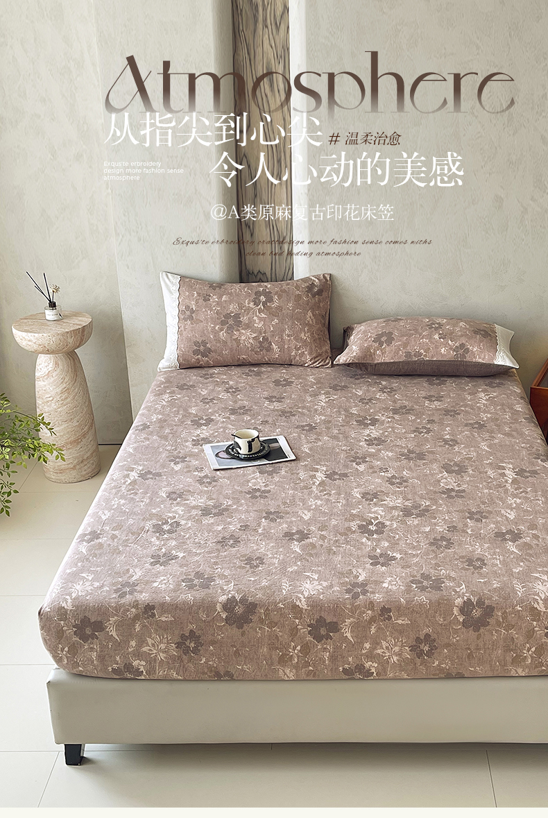 丝芙妮家居(原乐视家纺) 2025新款全棉纯棉蕾丝花边原麻单品床笠单件床笠 陌清香