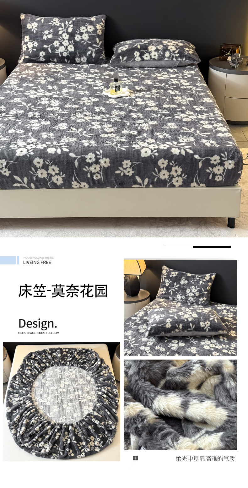 小叮当家纺仓储工厂店 2025新款印花兔毛绒高克重单床笠 床笠单件 床笠-莫奈花园