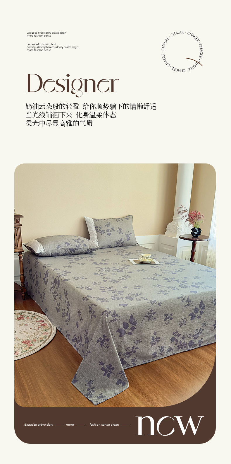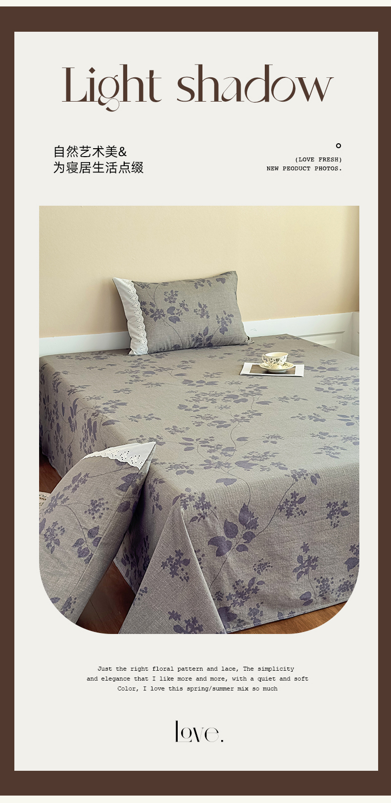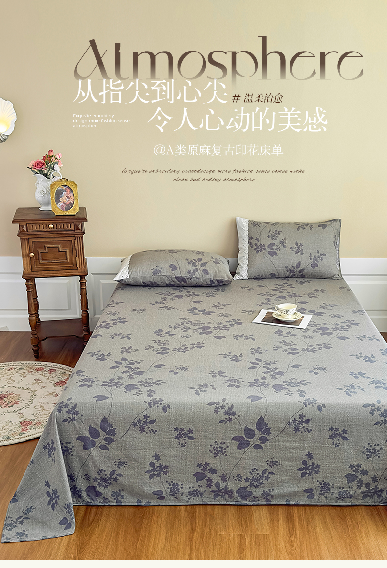 丝芙妮家居(原乐视家纺) 2025新款全棉纯棉蕾丝花边原麻单件床单单品床单 夜色未央