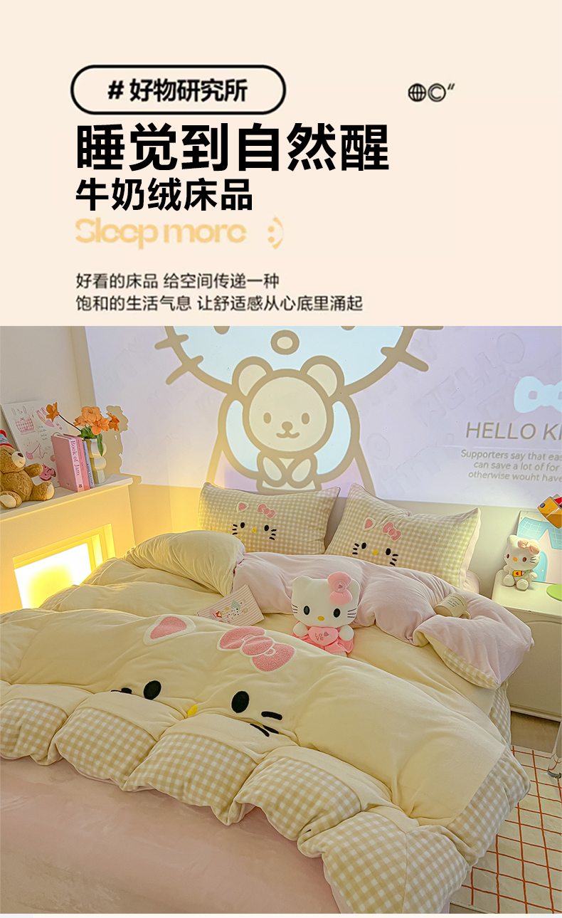(总)子钦家纺 2023新款赫本风棉加绒牛奶绒四件套,爱心,斑纹,豹纹,蝴蝶结,可爱熊,奶牛,山茶花,神秘花园,素描花,田园风情