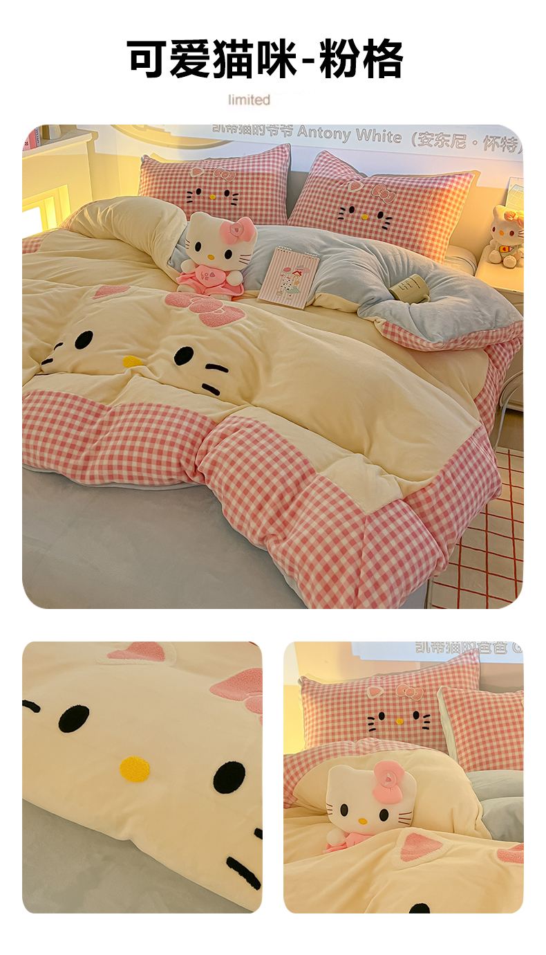 商品名称:子钦家纺 2025新款加厚牛奶绒可爱猫咪毛巾绣床单床笠四件套-可爱猫咪 可爱猫咪-咖格