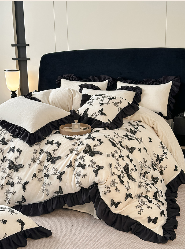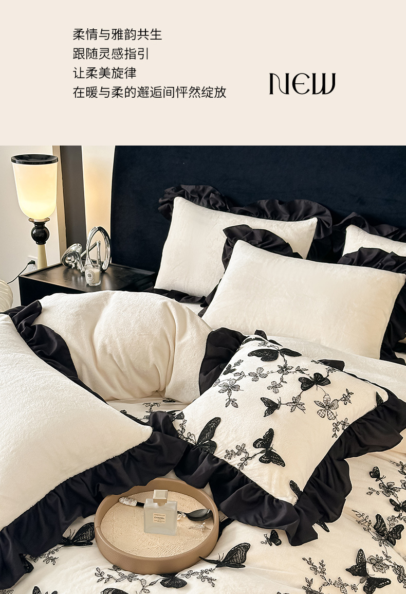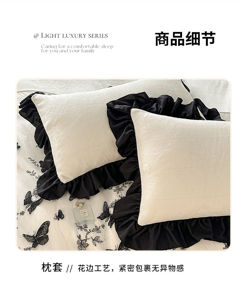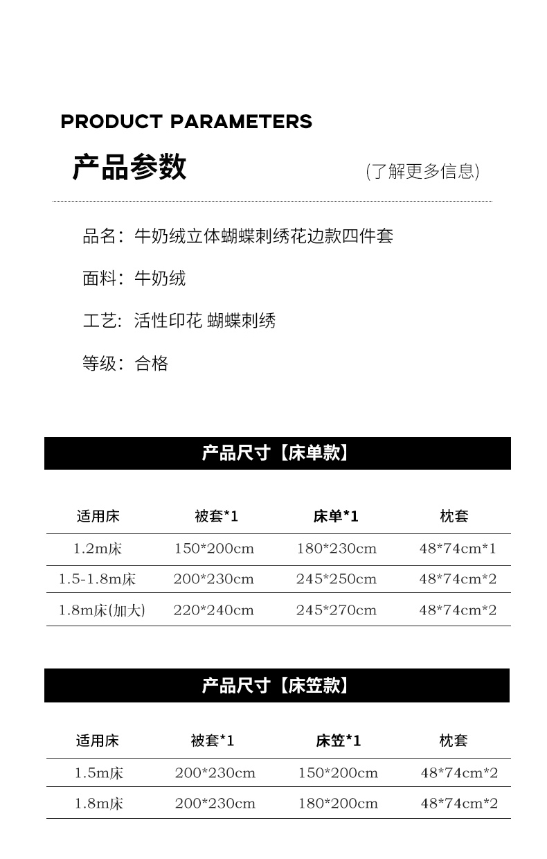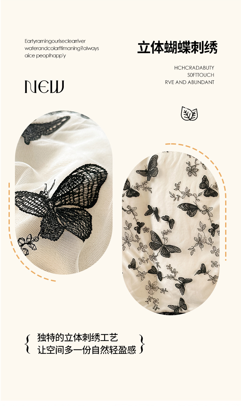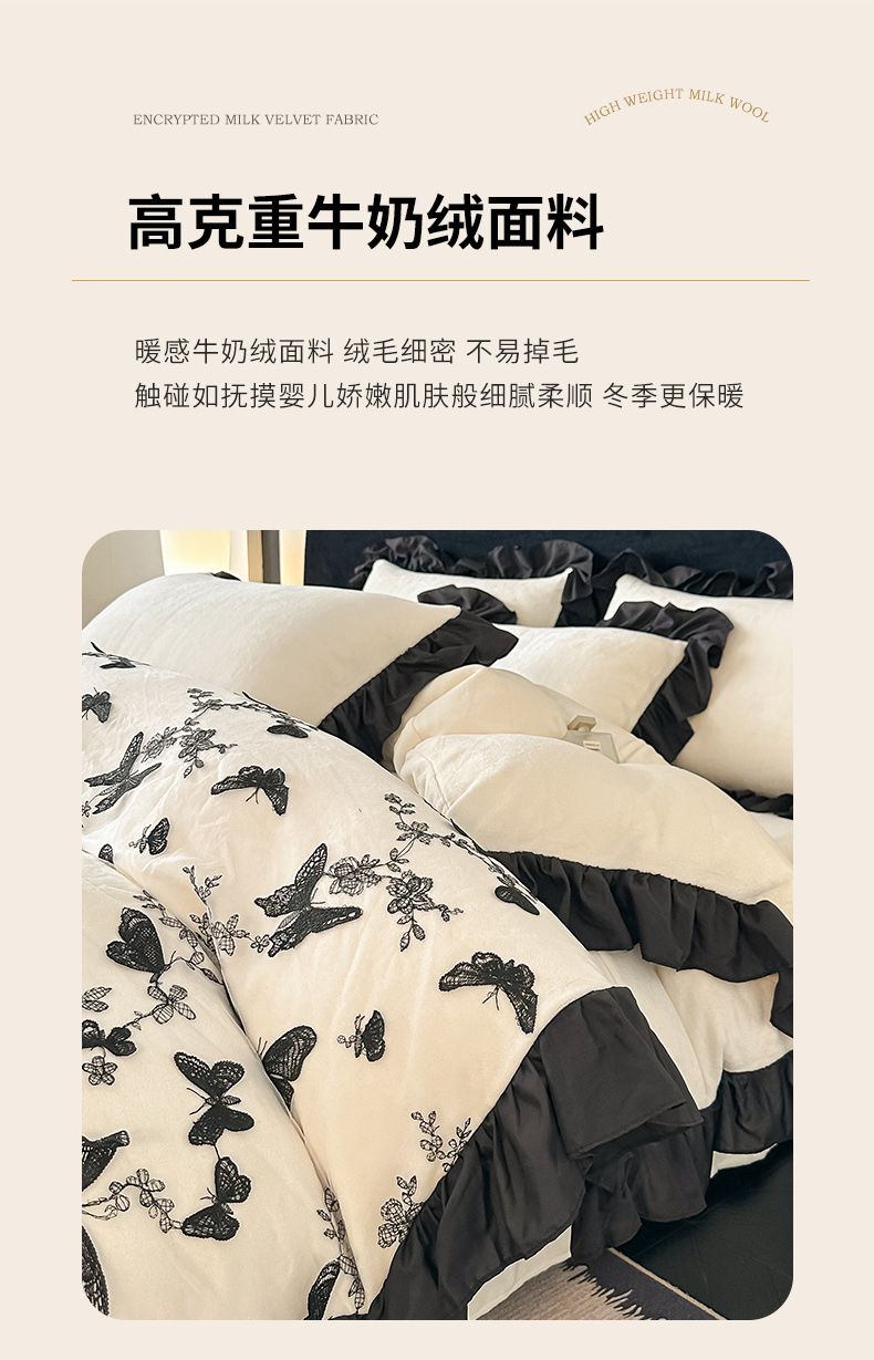 当前位置: 91家纺网 > 商品网购 > 床品套件 > 四件套 > 牛奶绒四件套 > 凯美家居 2025新款牛奶绒立体蕾丝刺绣四件套-蝴蝶翩翩 蝴蝶翩翩-奶白