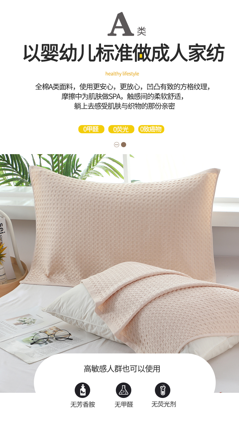 当前位置: 91家纺网 > 商品网购 > 居家日用 > 毛巾/浴巾/浴袍 > 毛巾 > 娇兰毛巾 2025新款7A抗菌全棉华夫格纱布枕巾 米白色 52cm*82cm/对