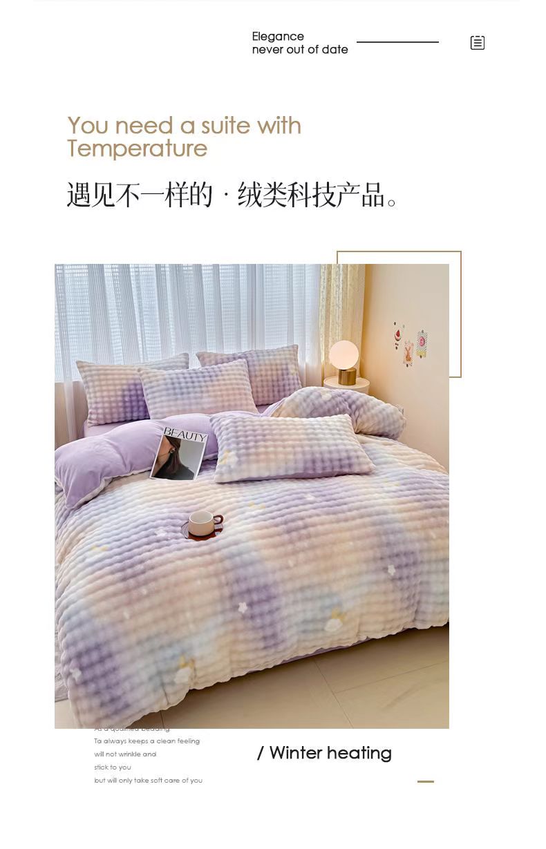 (总)小叮当家纺仓储工厂店 2025新款水晶绒夹棉床裙四件套,宝石兰,藏青,豆沙,粉玉,灰,酒红,墨绿,月光蓝