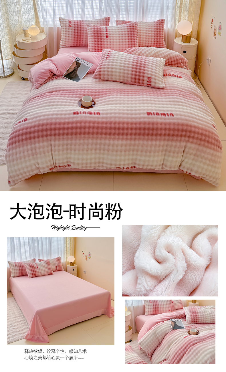 • 91家纺网 家纺一手货源 找家纺 小叮当家纺仓储工厂店 2025新款印花兔兔绒牛奶绒大泡泡单被套 被套单件 大泡泡-花朵粉