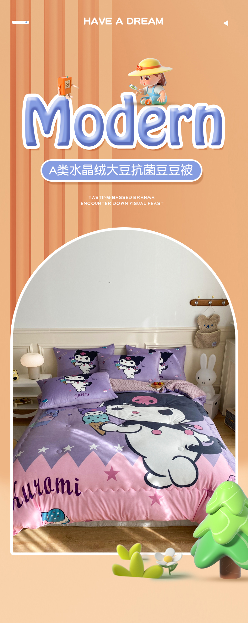 • 91家纺网 家纺一手货源 找家纺 一电 跨境电商可真空儿童豆豆被幼儿园秋冬被芯宝宝婴儿午睡小盖被盖毯小宝宝四季通用 甜筒库洛米