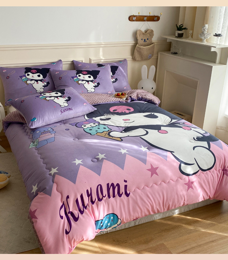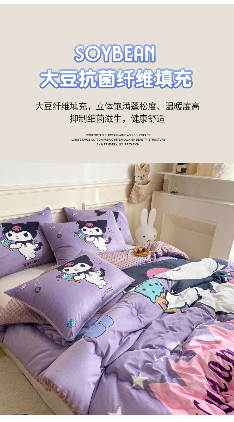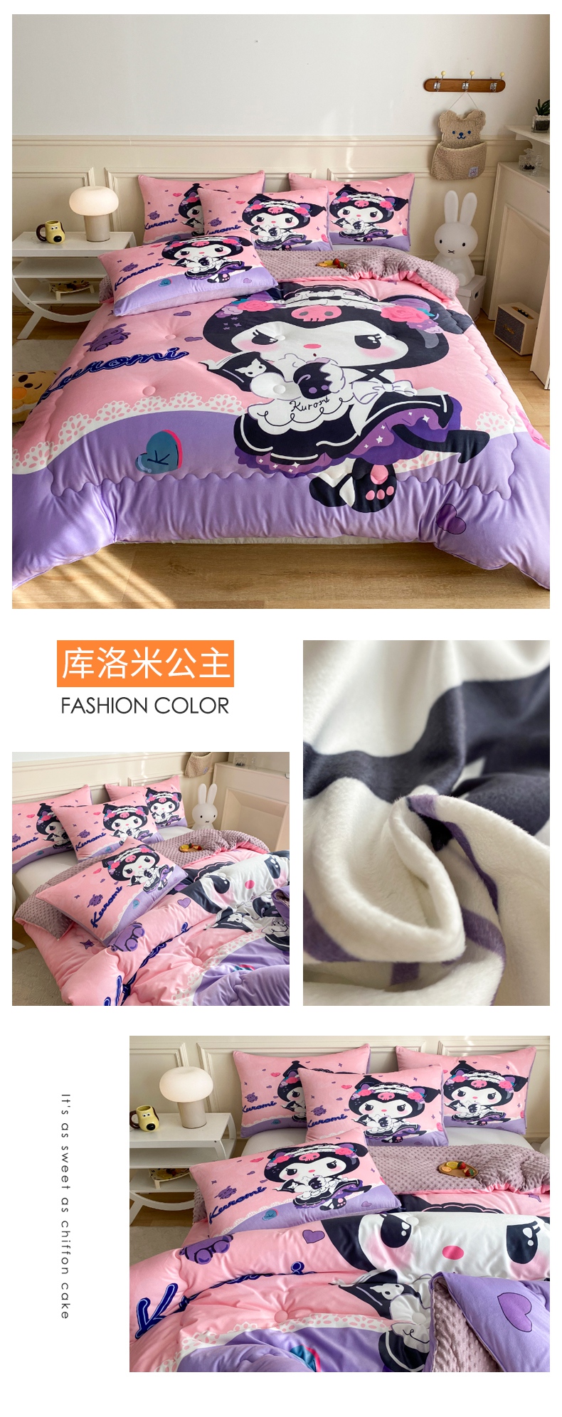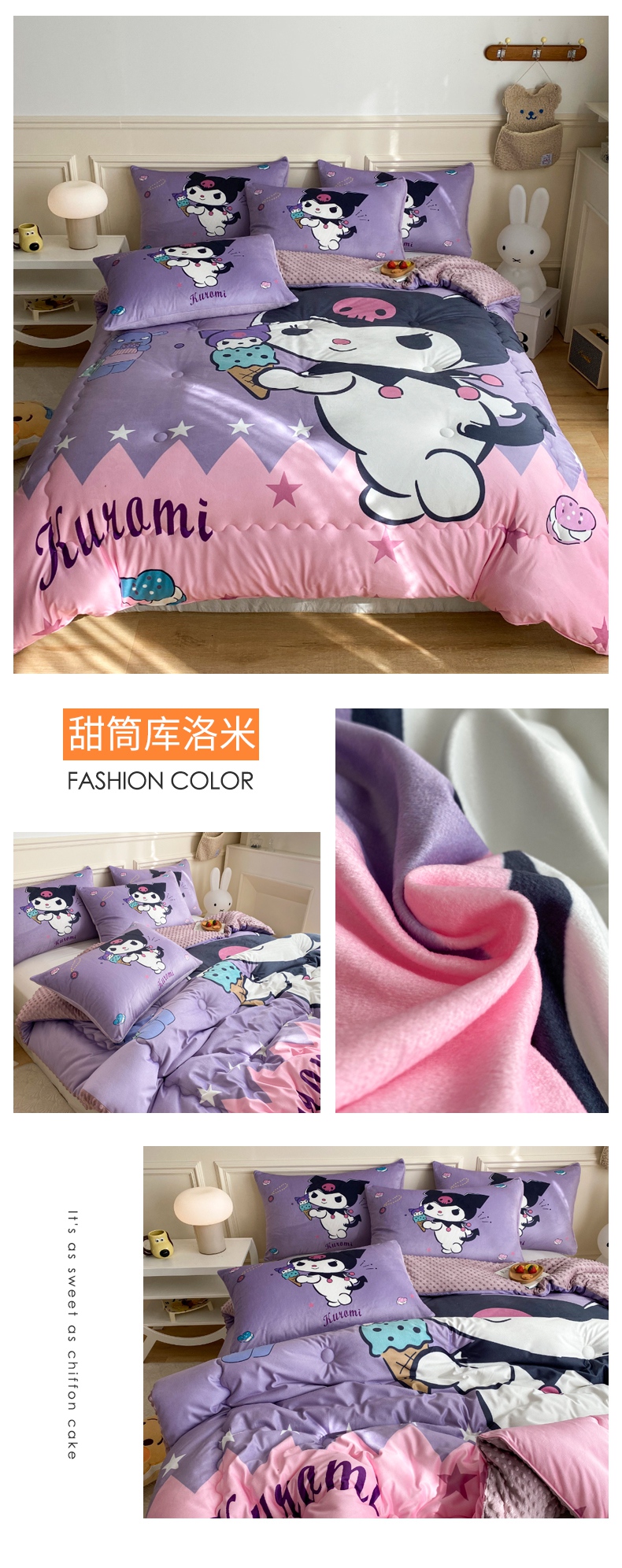 (总)一电 2025新款冬季双面牛奶珊瑚绒床上四件套法兰绒床品加绒被套床单三件套-第三批,公主库洛米,天使库洛米,甜筒库洛米,小兔子,圆点库洛米