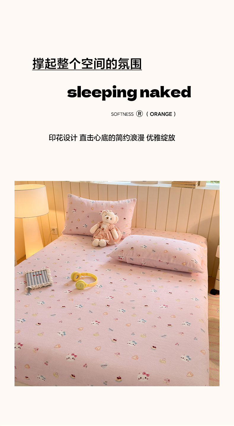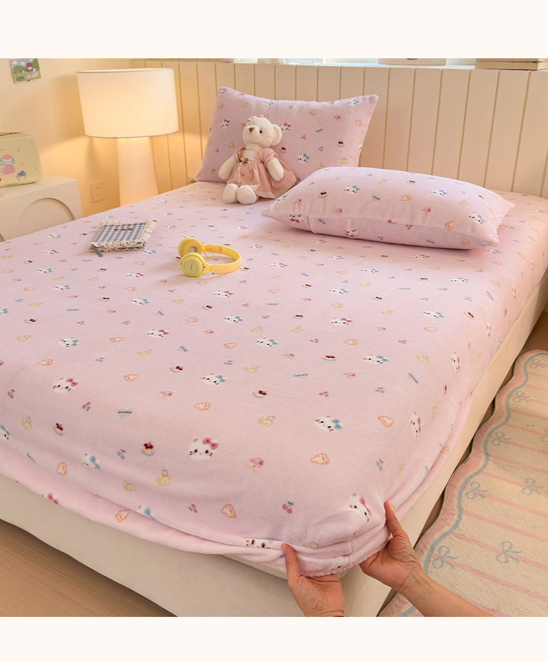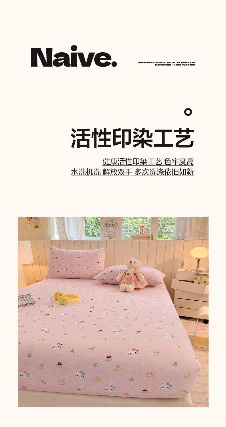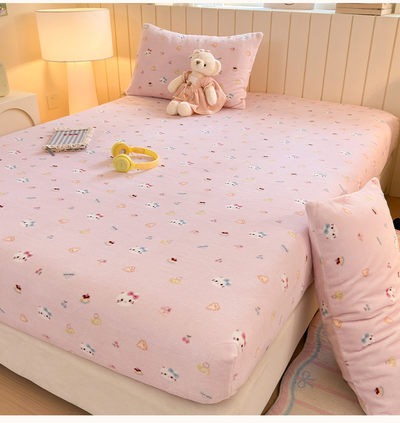丽美人家纺 2025年牛奶绒小版印花床笠单床笠床笠单件 可爱小猫