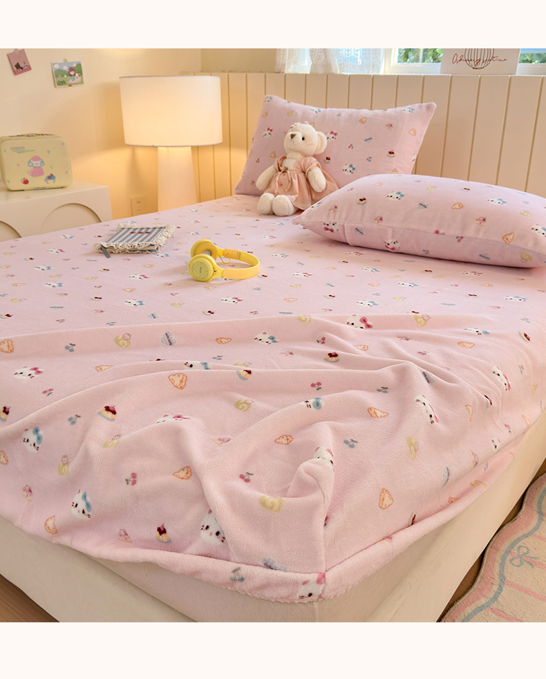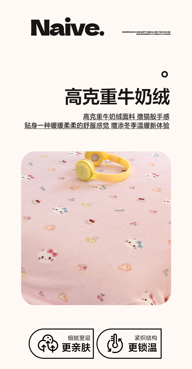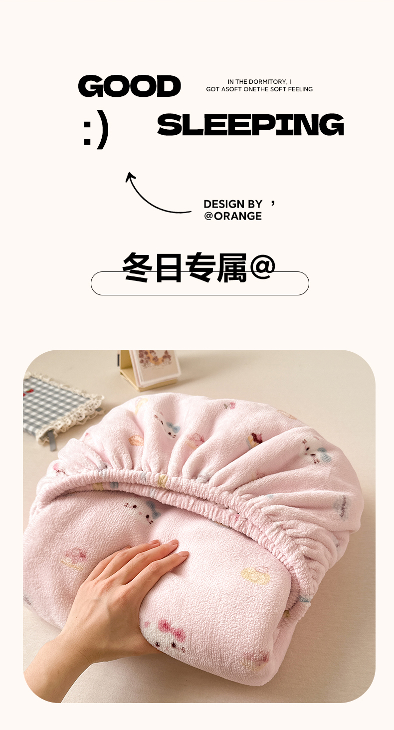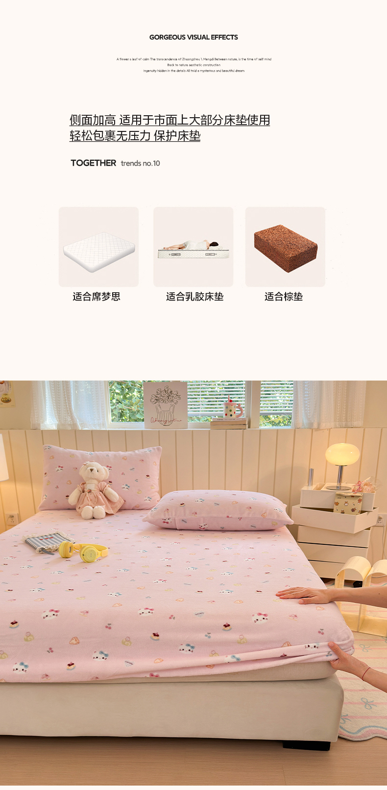 丽美人家纺 2025年牛奶绒小版印花床笠单床笠床笠单件 可爱小猫