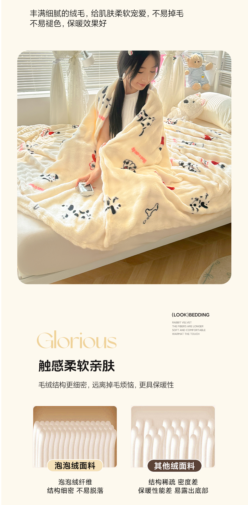 韩巢家纺 2025新款高克重泡泡绒毛毯多功能牛奶绒毯子支持跨境电商 波点萌狗