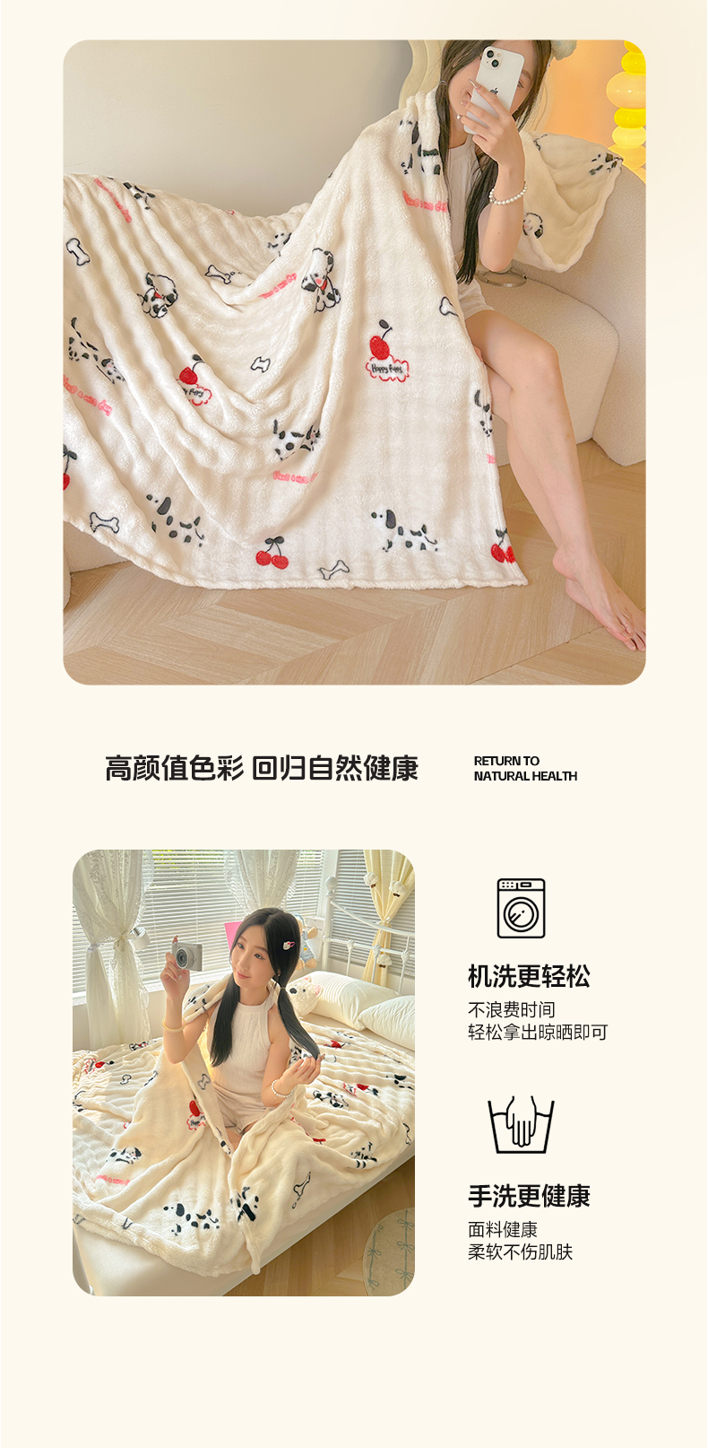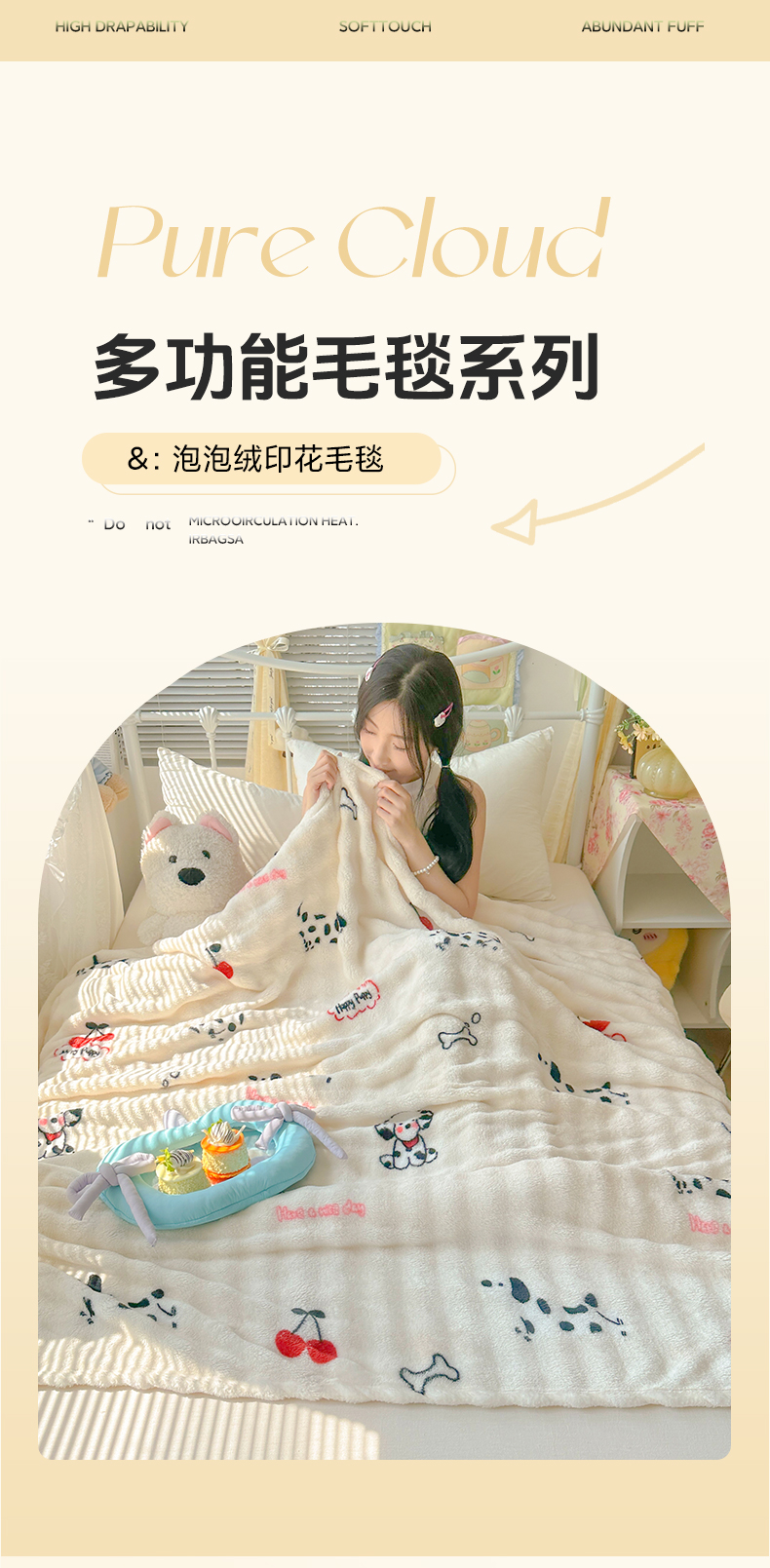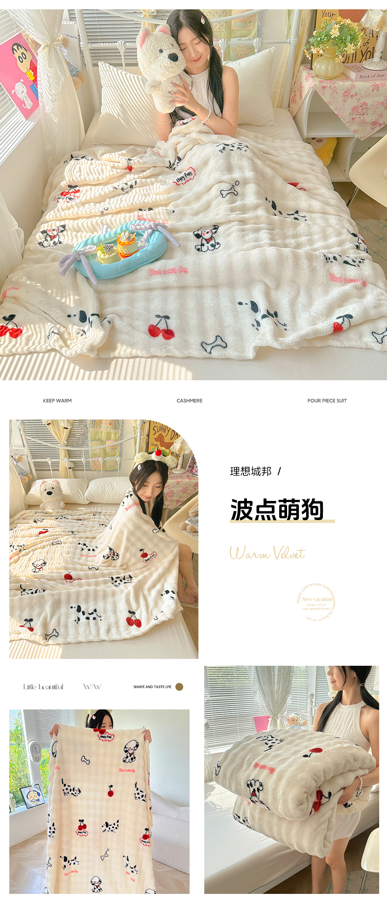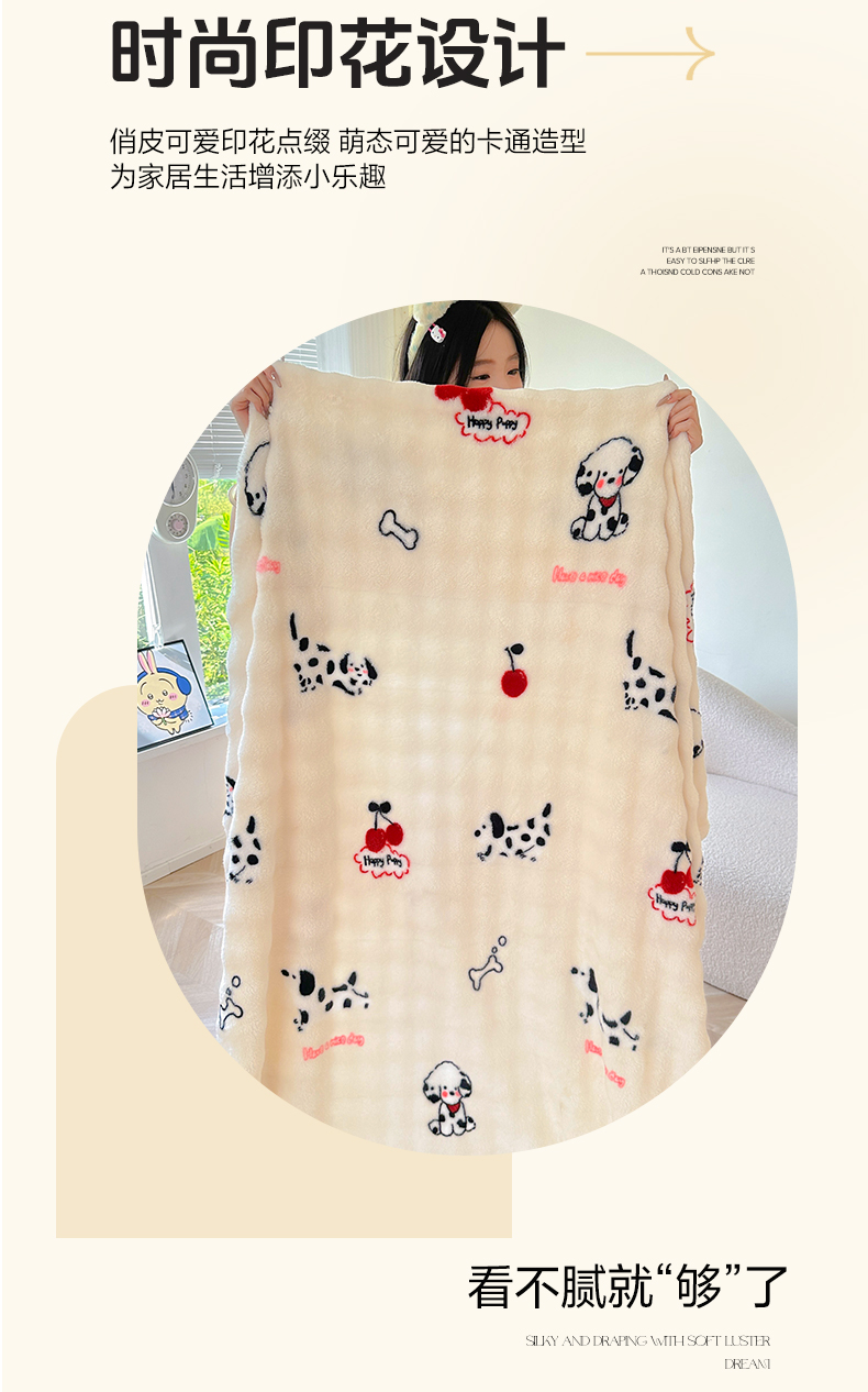 商品名称:韩巢家纺 2025新款高克重泡泡绒毛毯多功能牛奶绒毯子支持跨境电商 波点萌狗