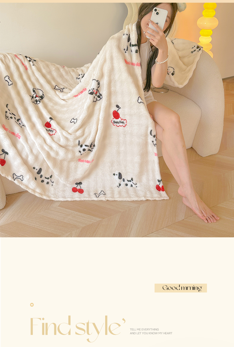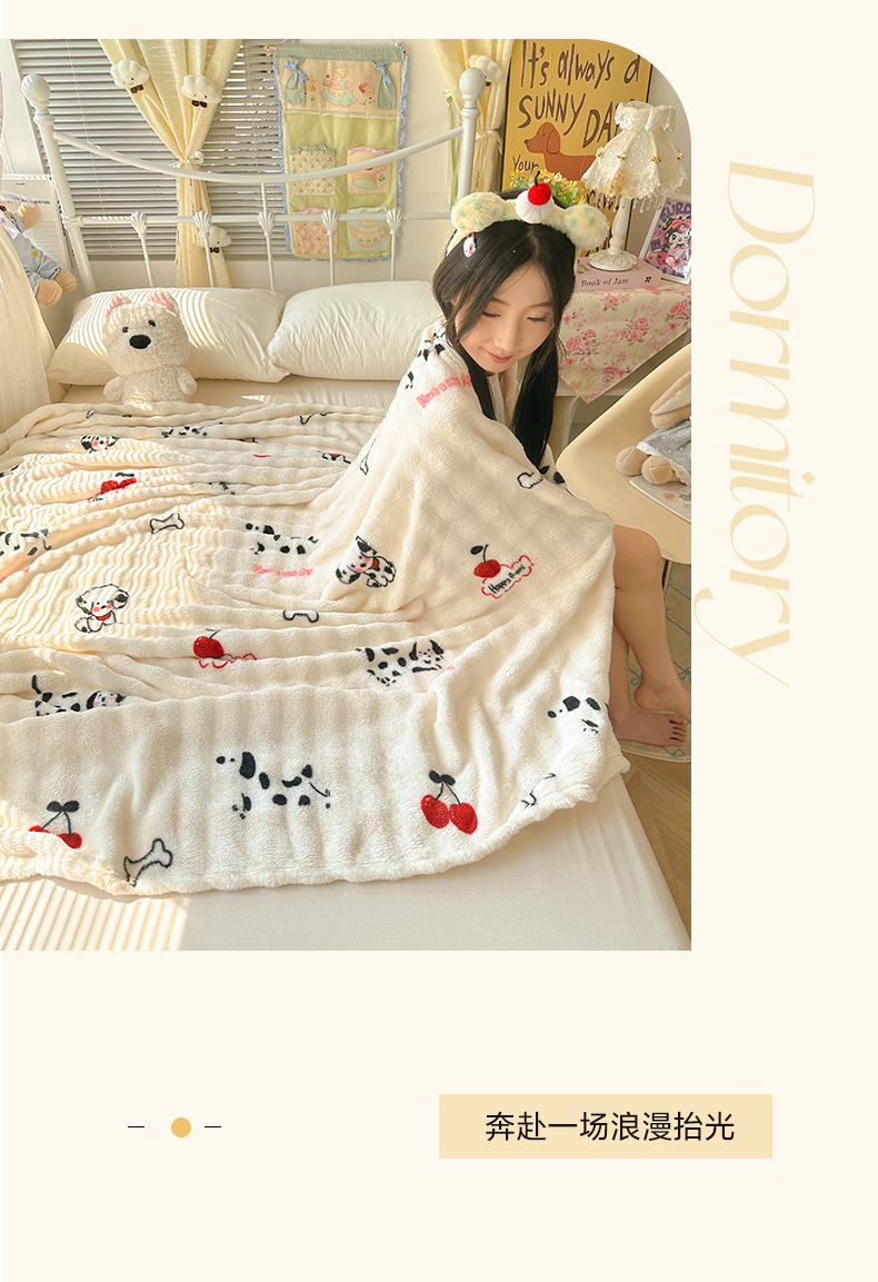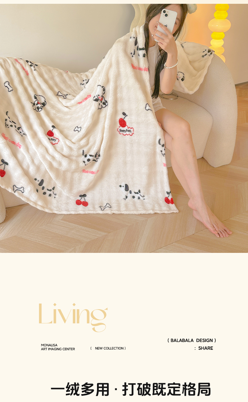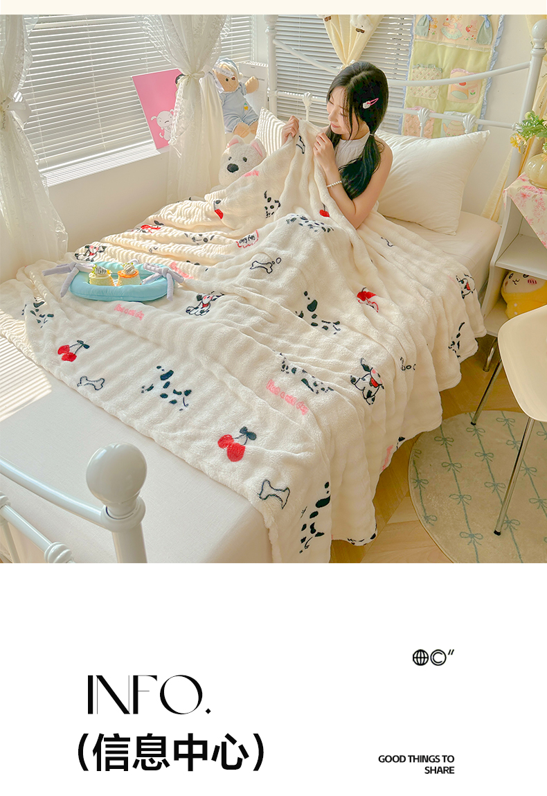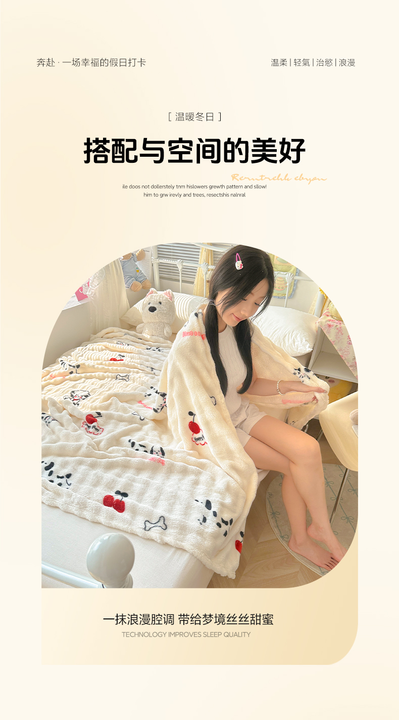 商品名称:韩巢家纺 2025新款高克重泡泡绒毛毯多功能牛奶绒毯子支持跨境电商 波点萌狗