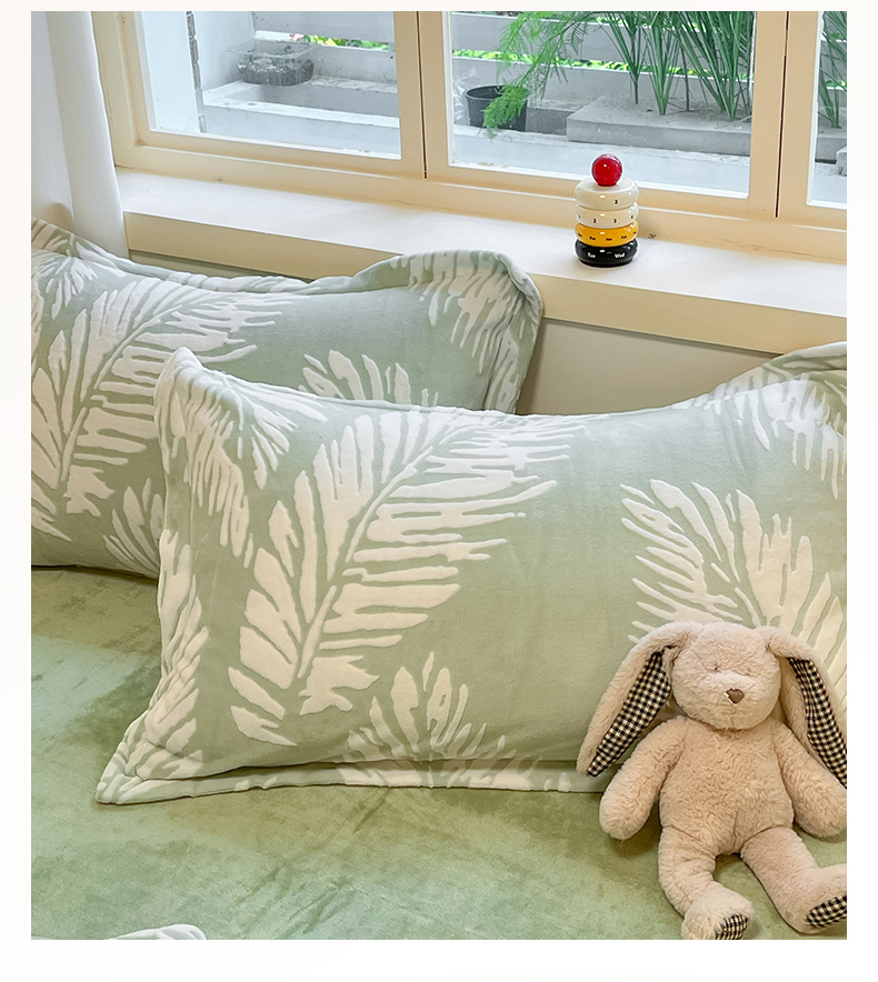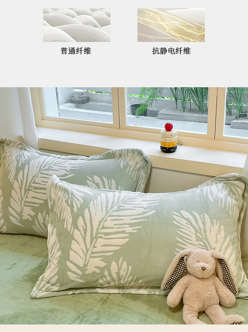 (总)名兮家居 2025新款高克重加厚雕花绒枕套,千叶-绿,朵美-粉,朵美-蓝,朵美-绿,千叶-粉,千叶-咖,羽毛-灰,羽毛-绿