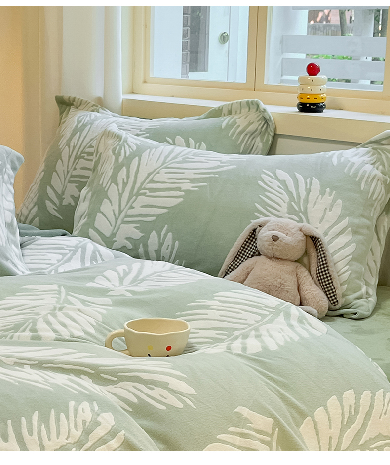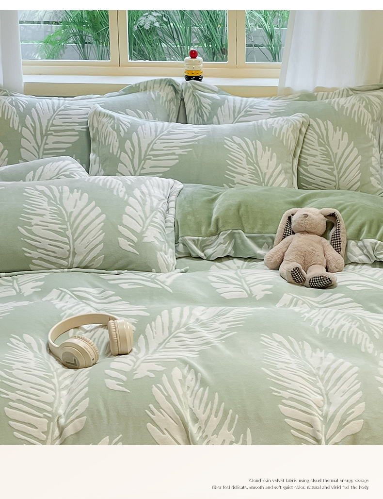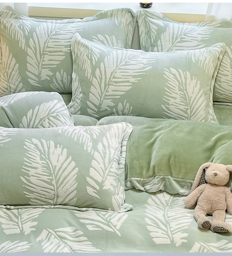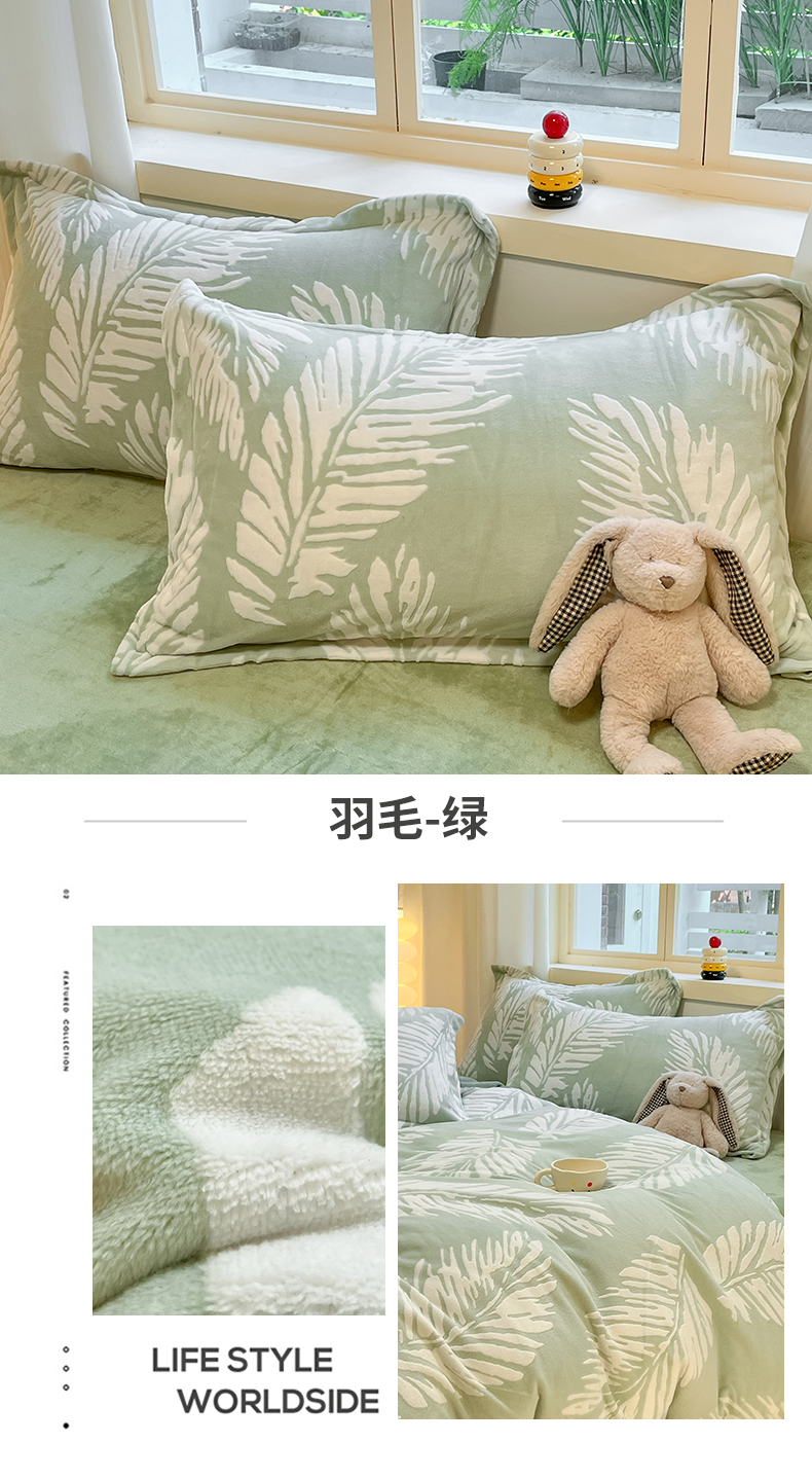 商品名称:名兮家居 2025新款高克重加厚雕花绒枕套 羽毛-绿