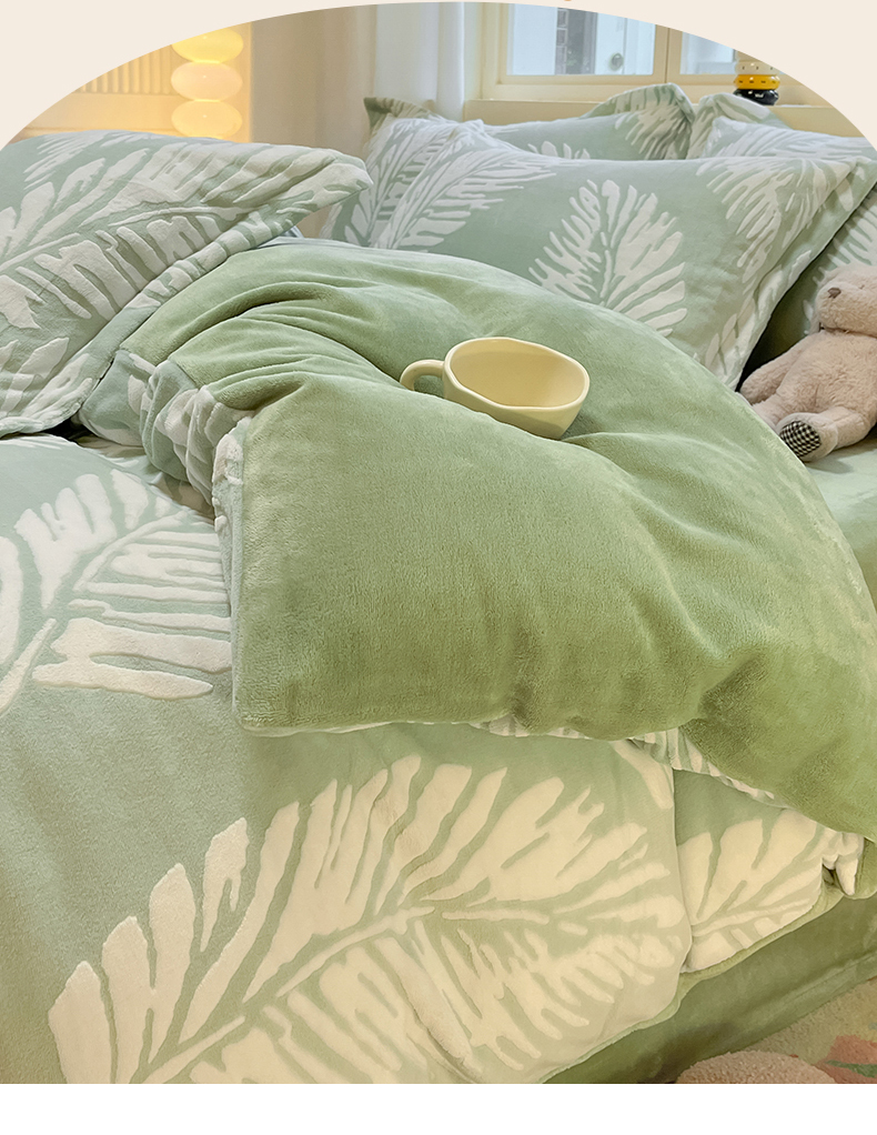 名兮家居 2025新款高克重加厚雕花绒枕套 羽毛-绿