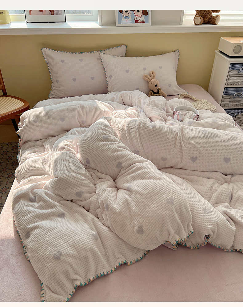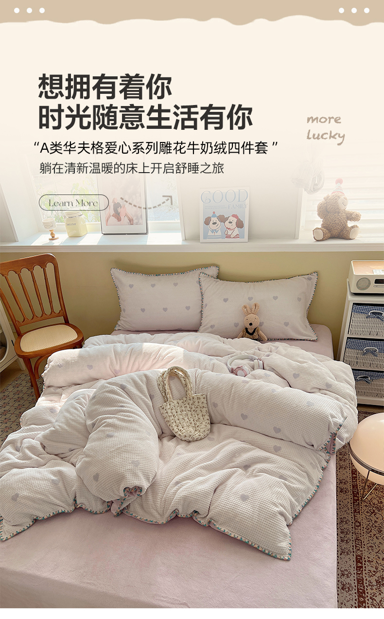 (总)十里居 2025新款三角针爱心系列雕花牛奶绒四件套