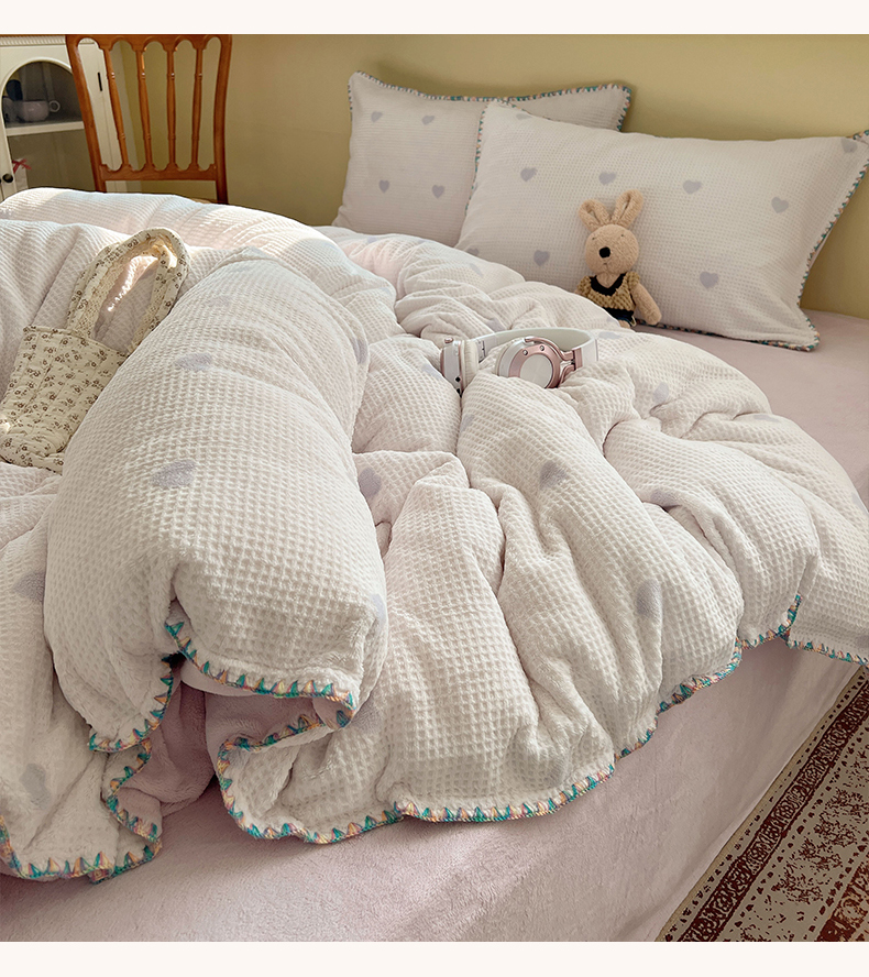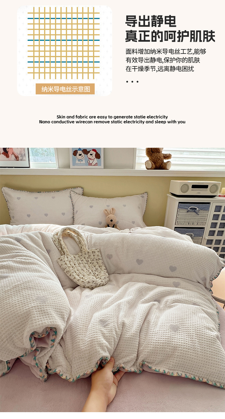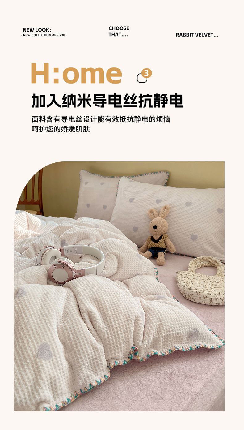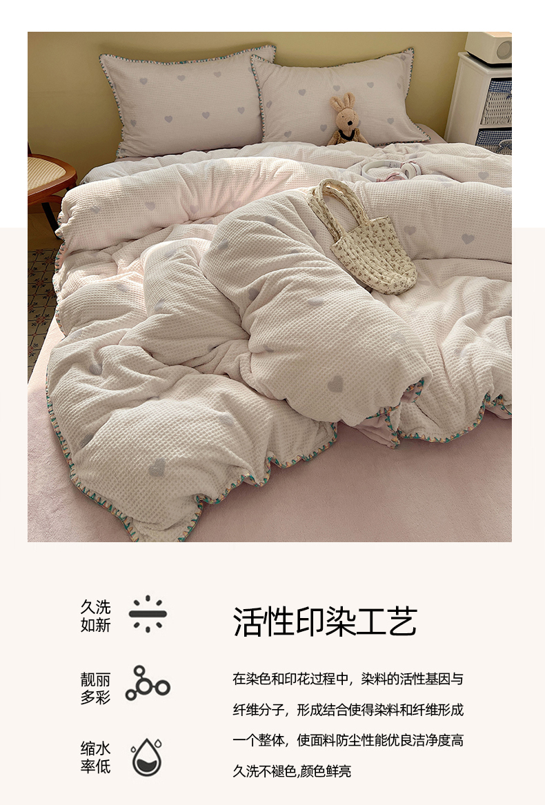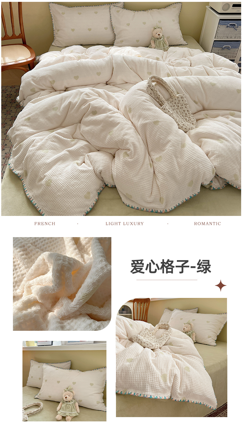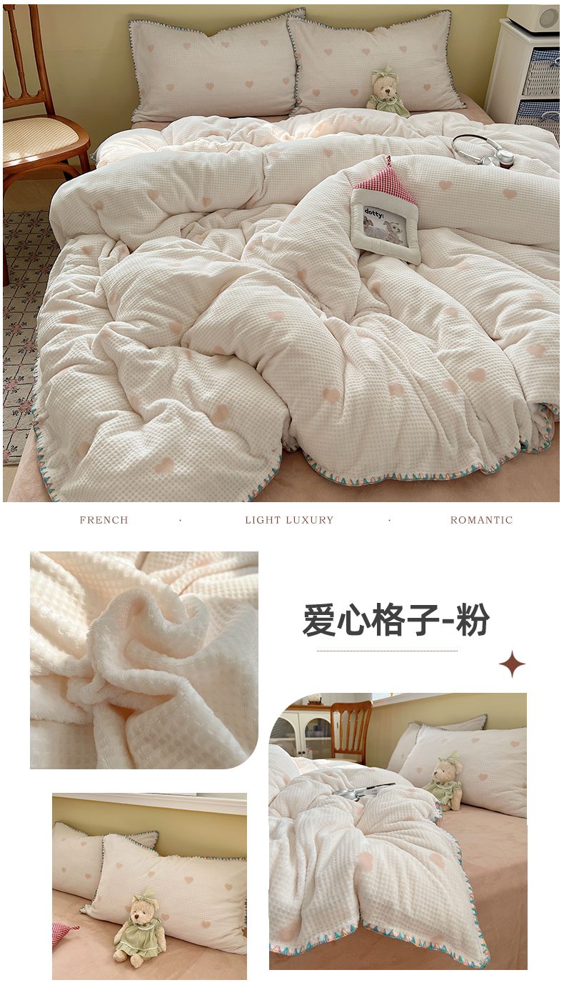 商品名称:(总)十里居 2025新款三角针爱心系列雕花牛奶绒四件套