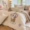 商品名称:漫布云家纺2025新款230g全消光大版卡通牛奶绒兔毛贴布绣花四件套可爱卡通男孩女孩法莱绒被套三件套 布林-浅咖