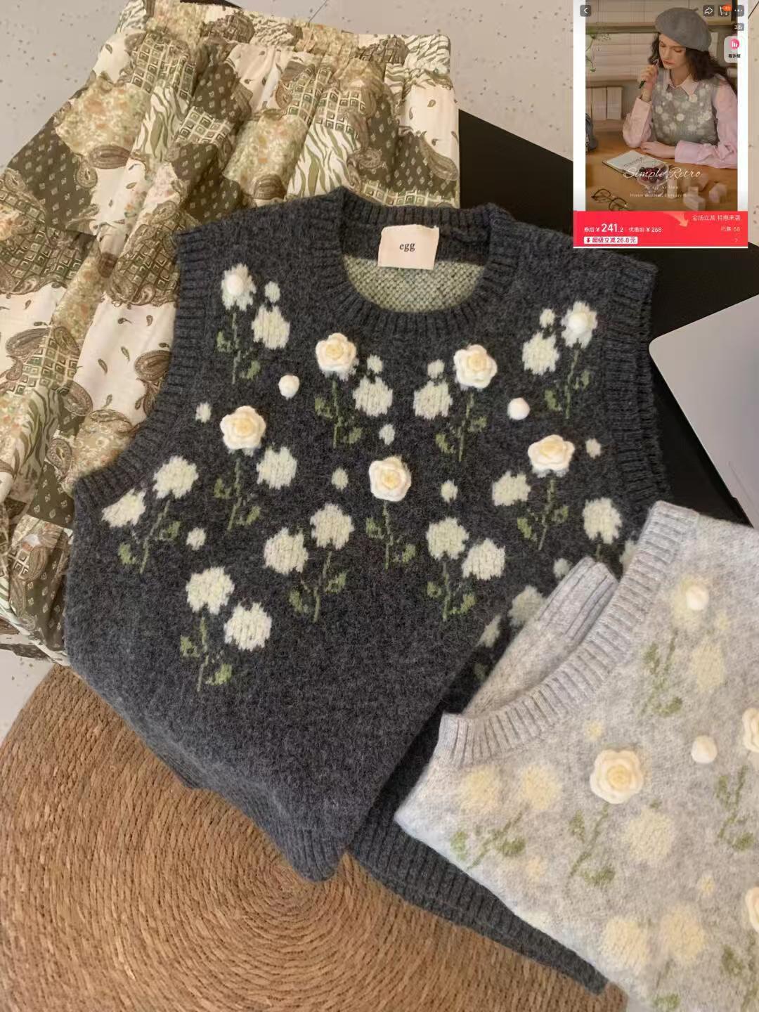 商品名称:(总)洛兰沙家居馆 只代发小香风毛衣女春秋慵懒可爱甜美圆领花朵针织开衫短款外套温柔上衣