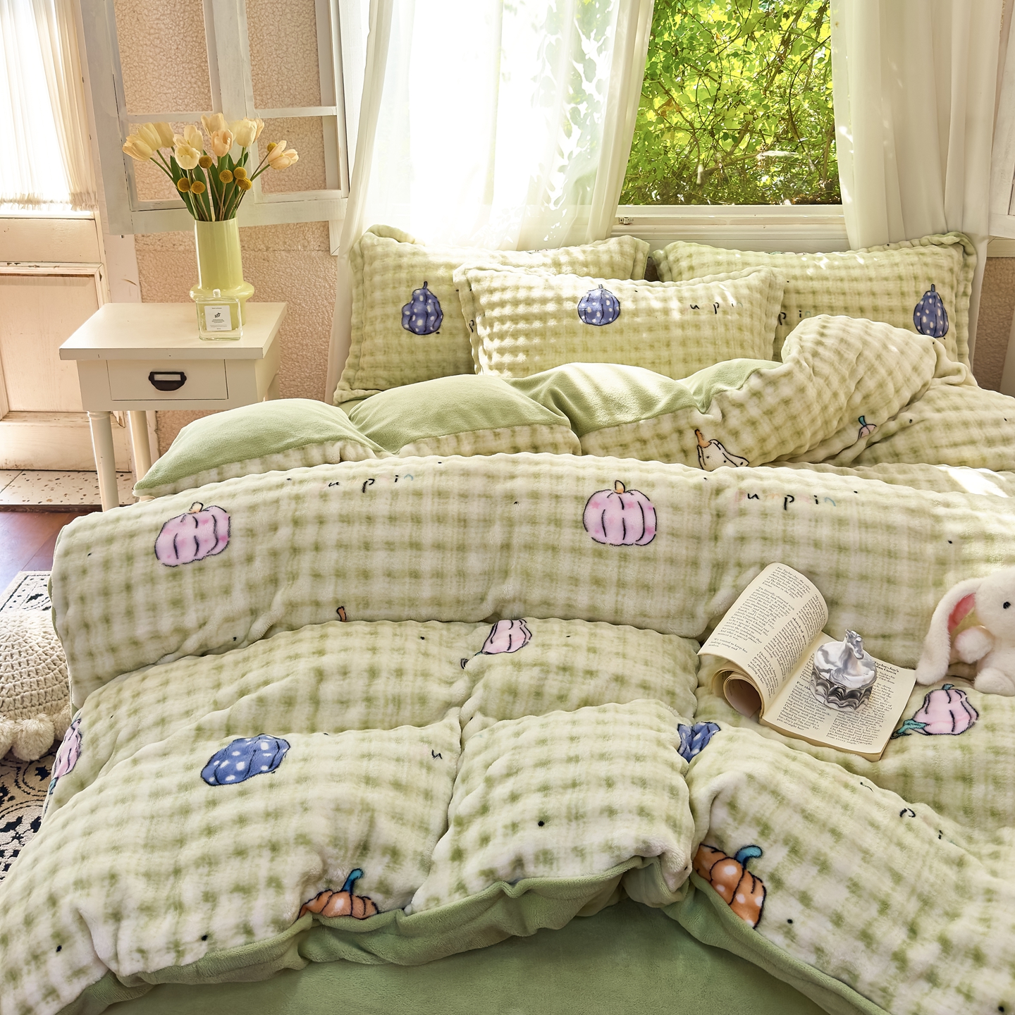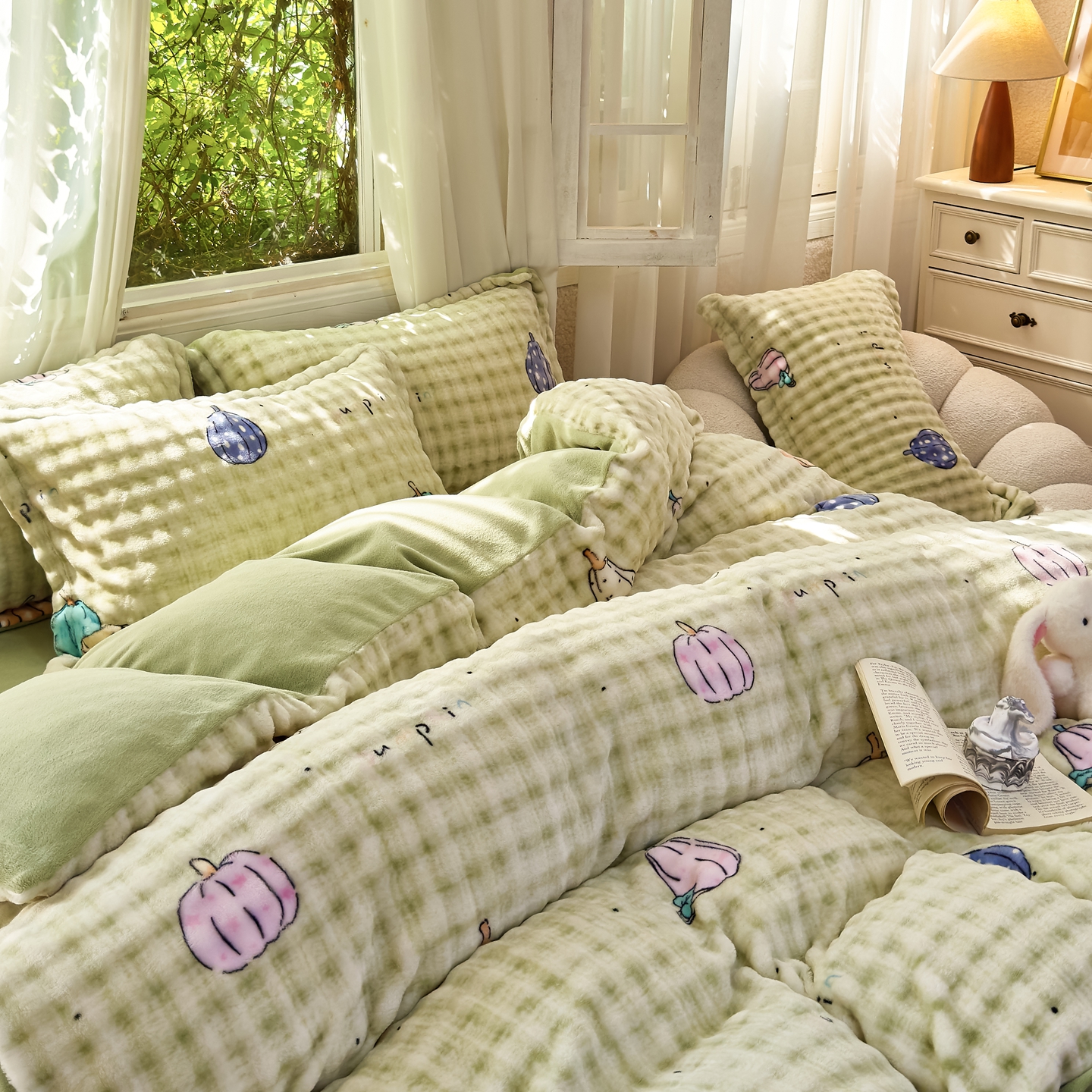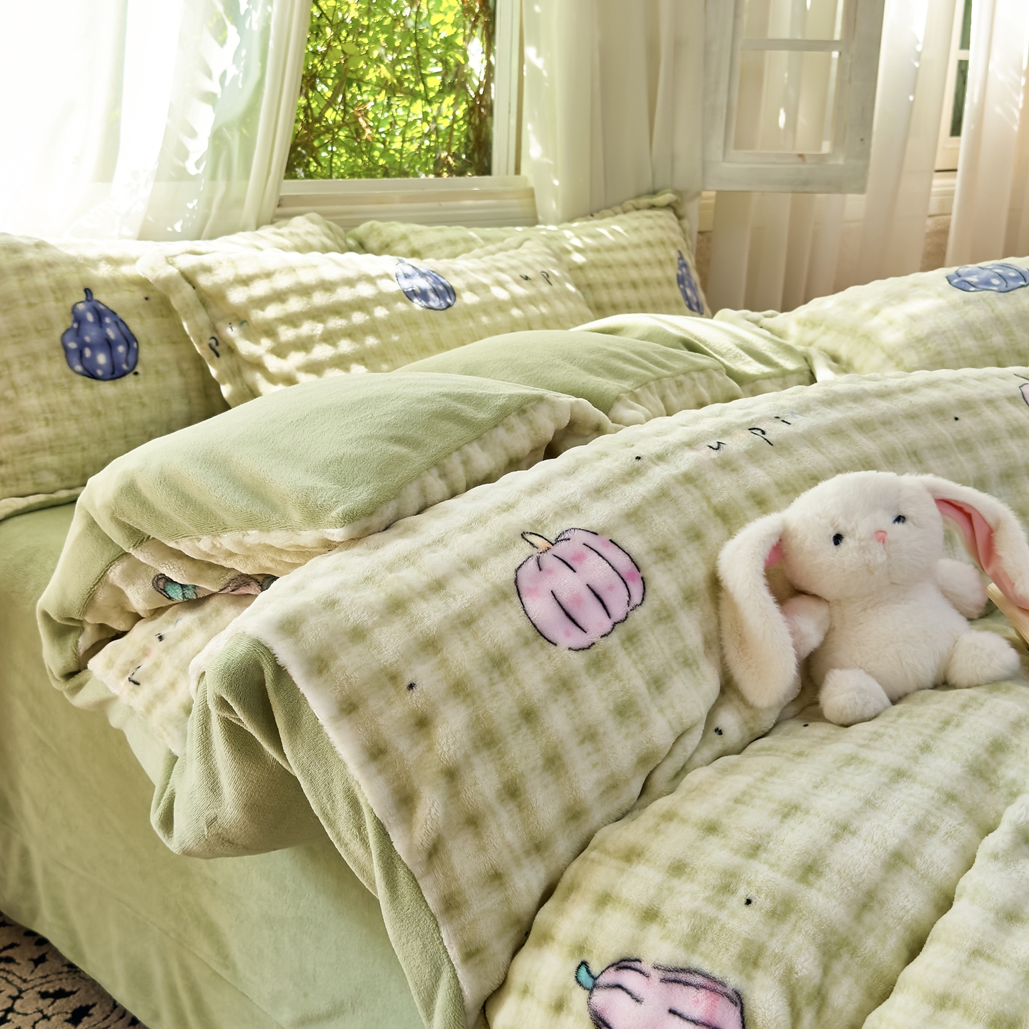 梦莱斯 2025秋冬新款高克重牛奶绒四件套 小南瓜