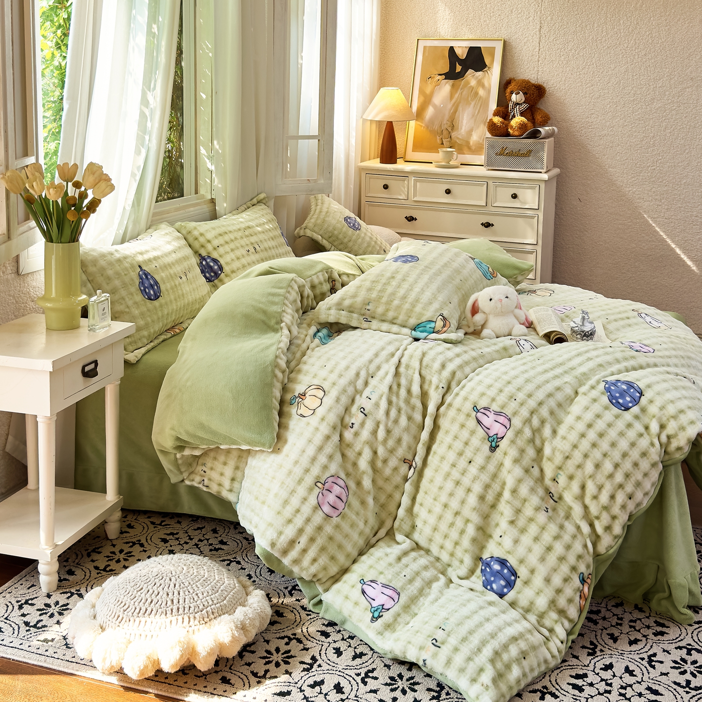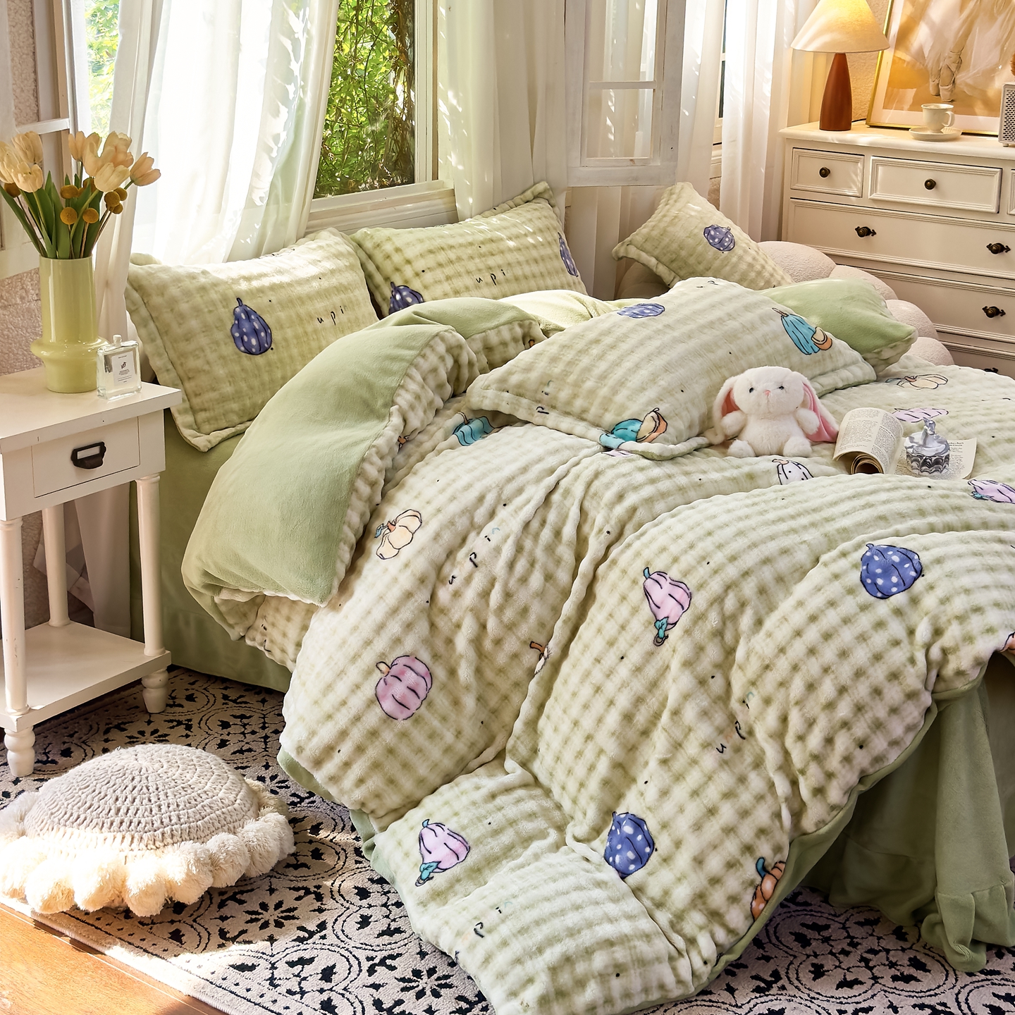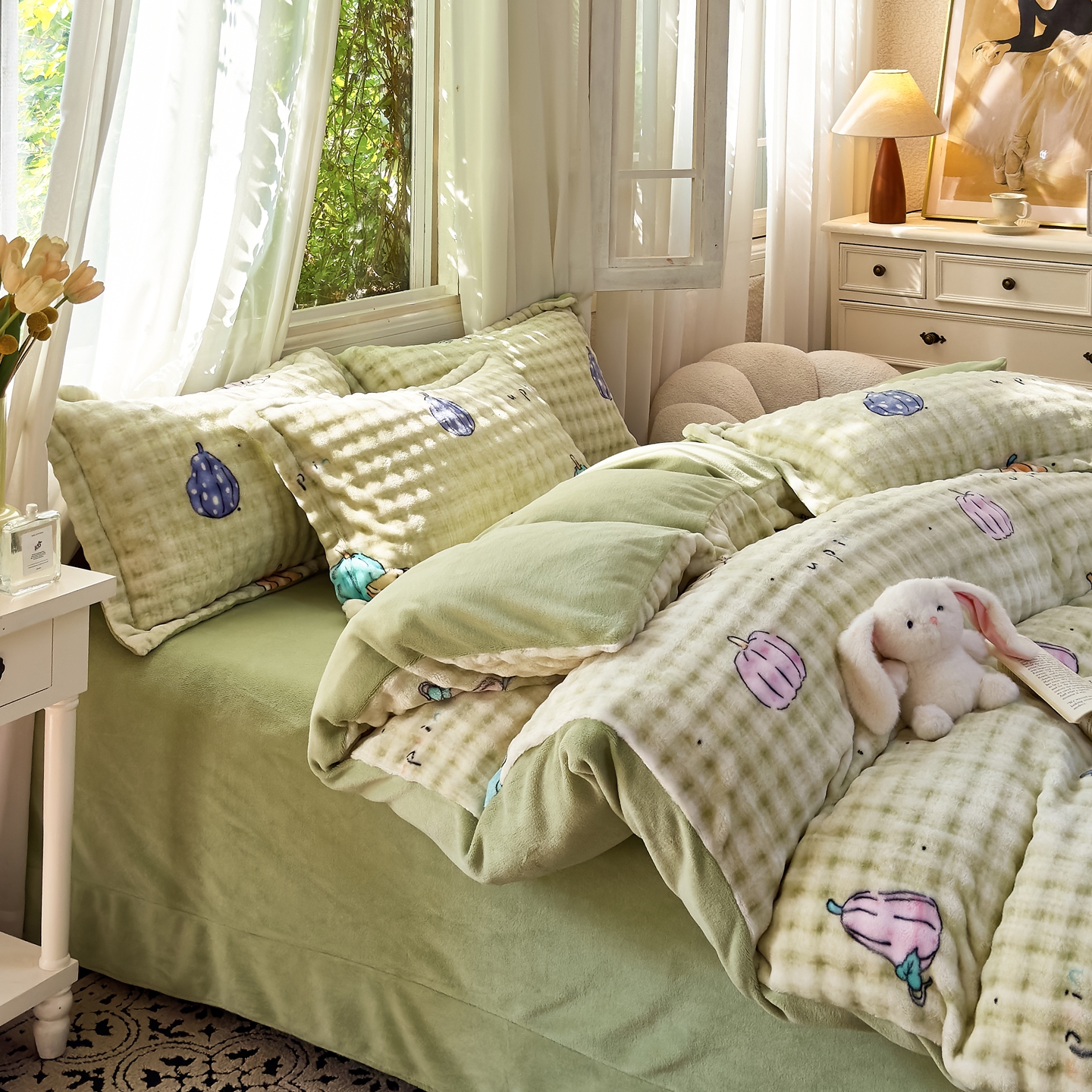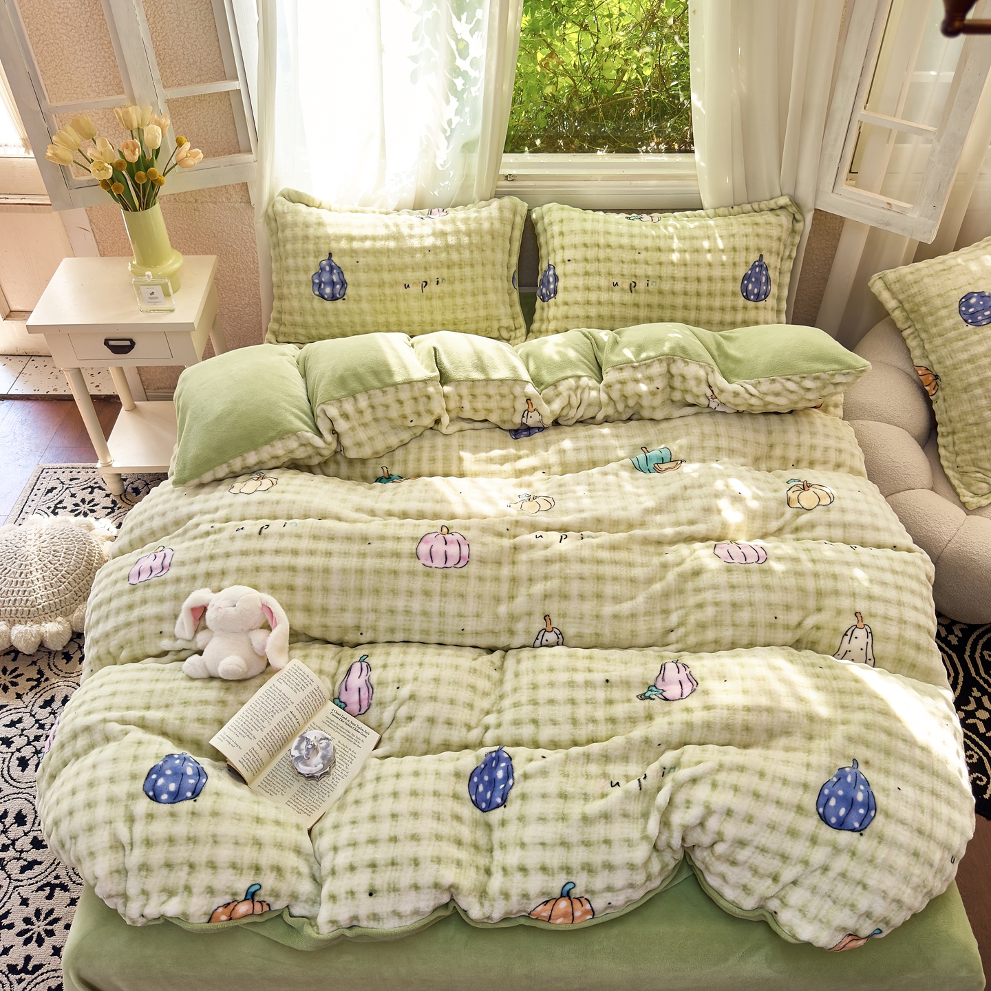 梦莱斯 2025秋冬新款高克重牛奶绒四件套 小南瓜