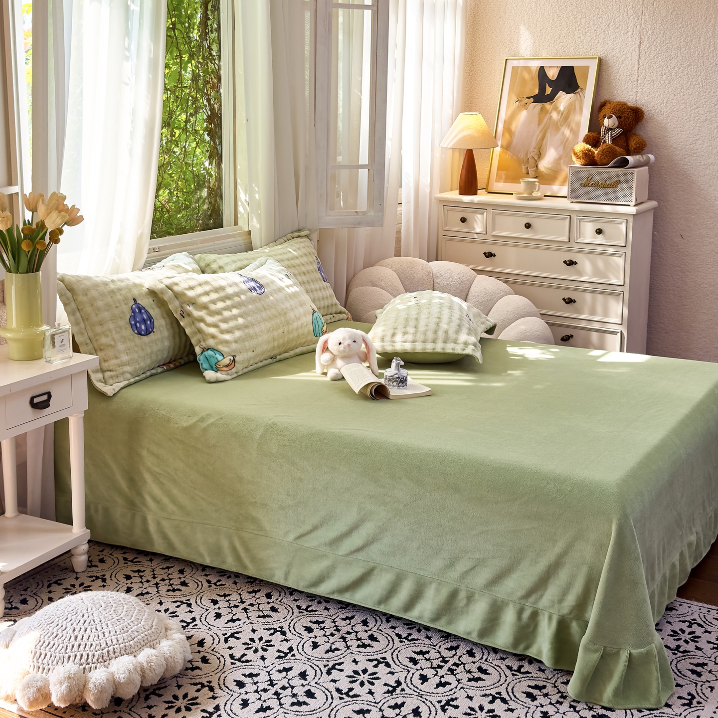 (总)梦莱斯 2025新款云感木棉皱皱双层纱全棉花边四件套,百福蓝,春风里,薄荷微凉,春晓,豆蔻,蝴蝶梦,可颂,兰黛,山野栀子,素颜,太妃糖,心动,遇见,芝士奶酪,紫爱心,紫苏,花园兔,蜡笔画,小黑兔,白茶-绿,初恋,莱茵河畔,桃花诺