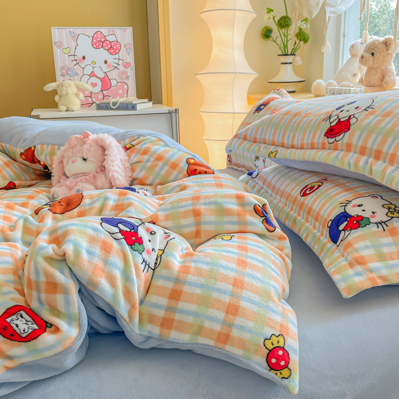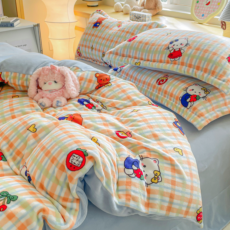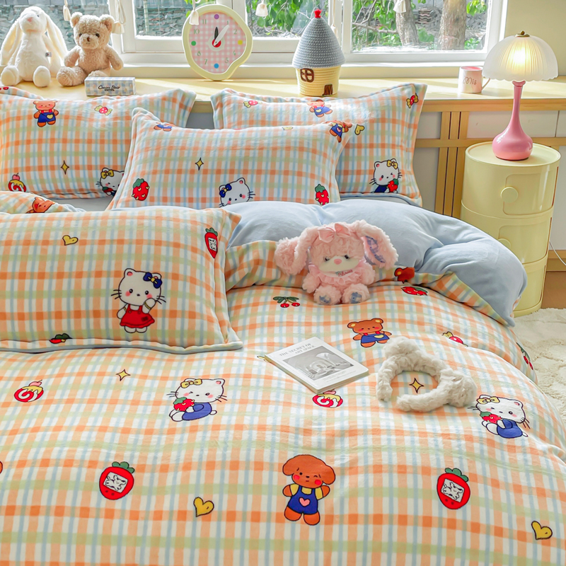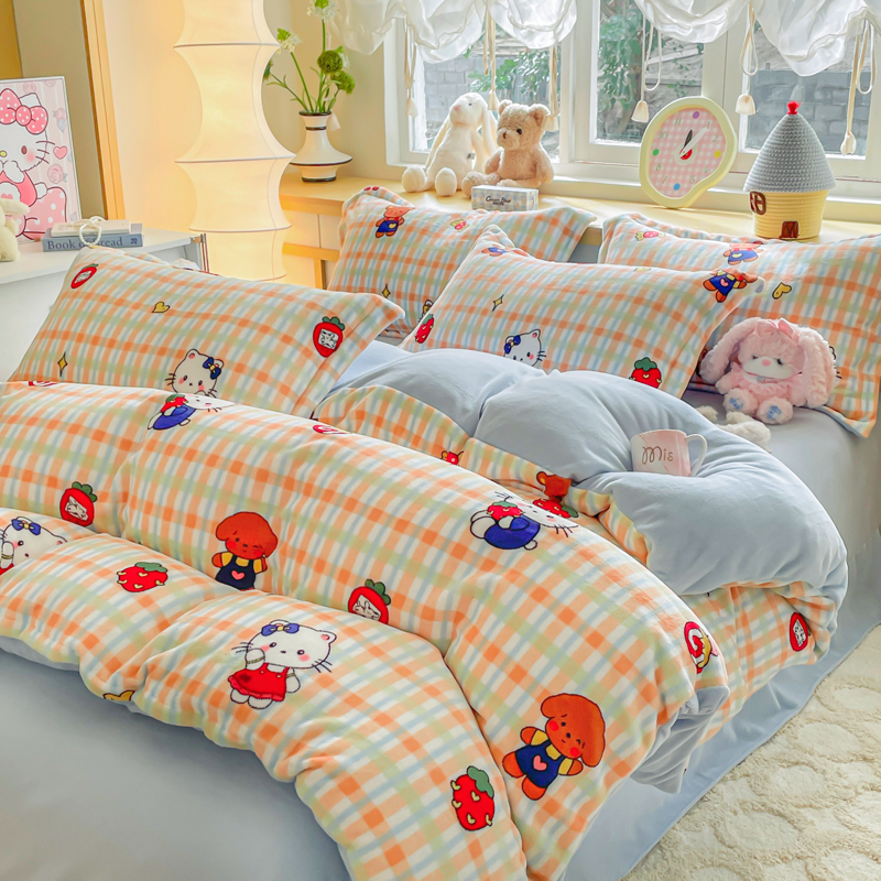 商品名称:一比一 2025新款双面牛奶绒四件套 草莓喵蓝